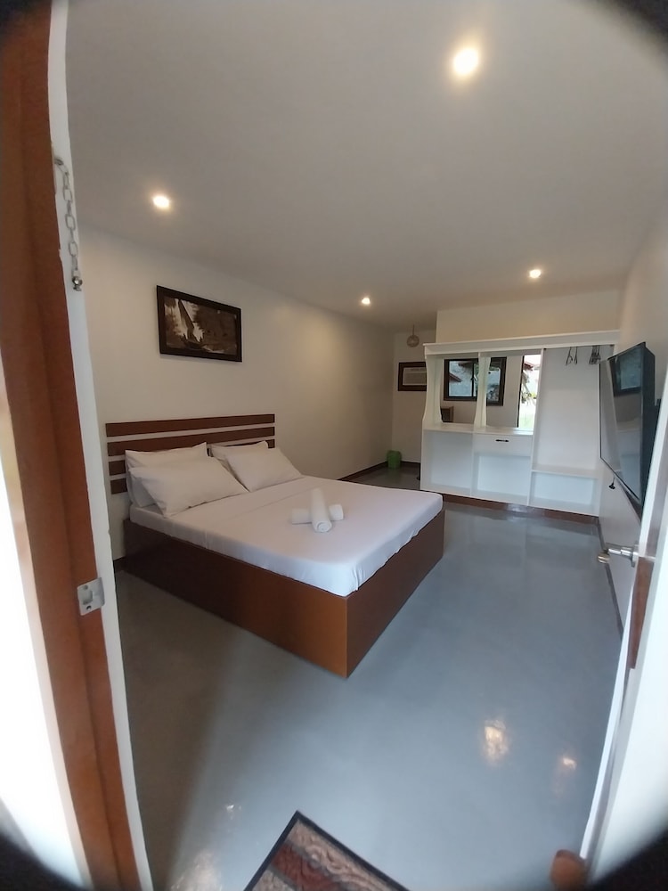 The room was very small and luckily the bed has a mosquito net, because there a lots of mosquitos and other animals like lizards for example.. The bathroom was quite horrible, not really clean and the shower with very low pressure and even switched off a couple of times when the neighbours used the water. I don't want to talk about the toilet...