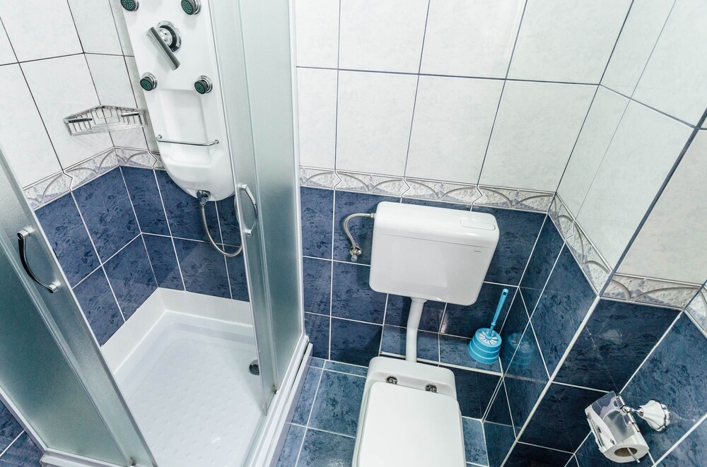 Badezimmer ist ziemlich eng, nicht geeignet für umfangreiche Leute, ziemlich viel Lärm und mit die Fenster zu, klappt es.