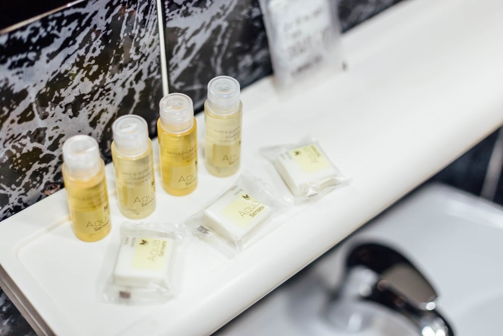 Guests are provided with free hand sanitizer