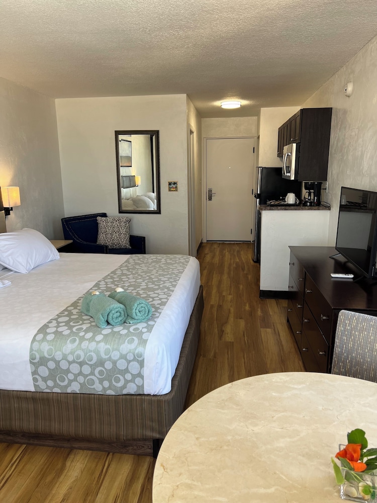 Our 25 air-conditioned rooms are designed for relaxation, featuring kitchenettes, private balconies or patios, and 40-inch flat-screen TVs. Keep connected with complimentary wireless internet, and don't forget to enjoy your morning coffee from your in-room coffee/tea maker.
