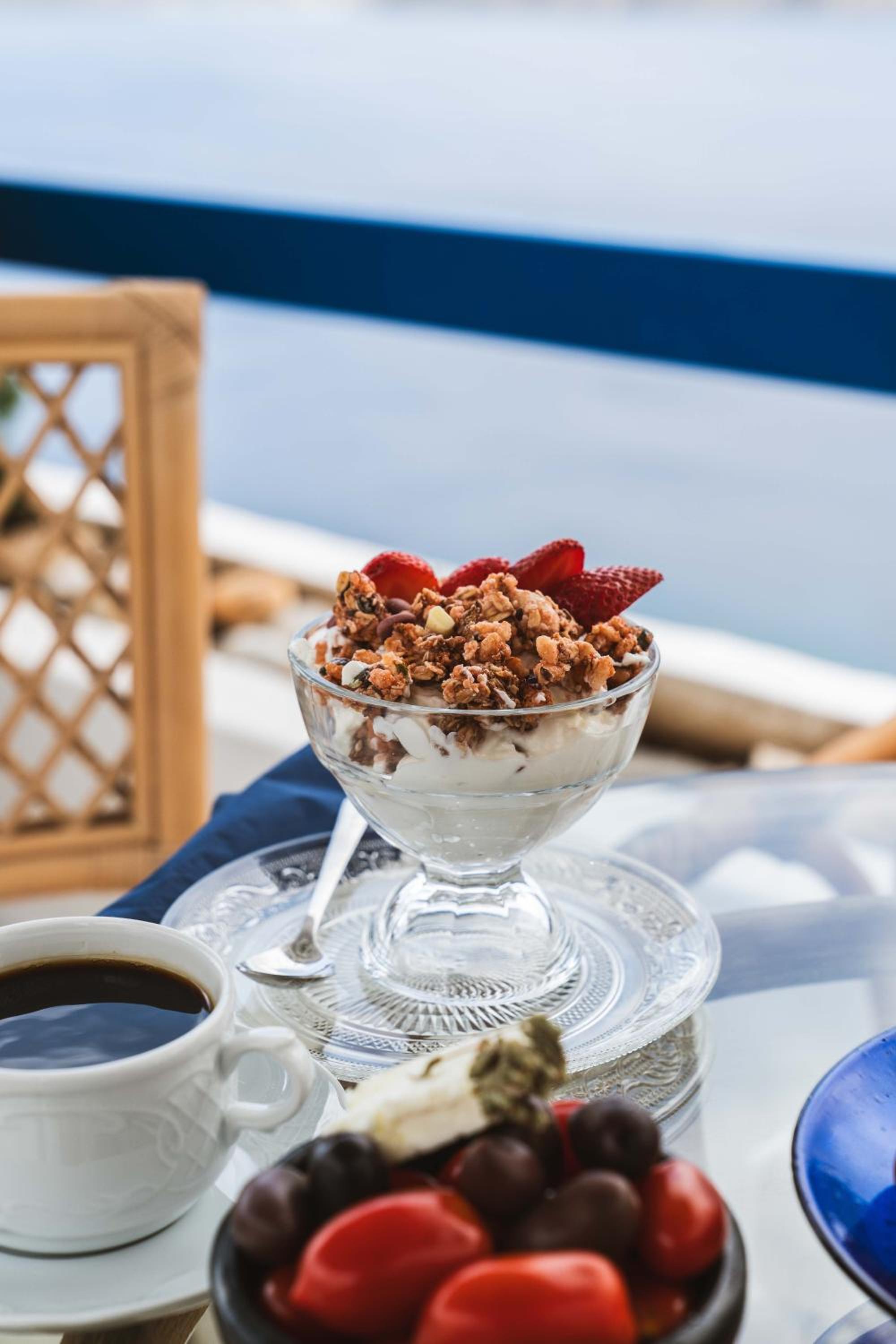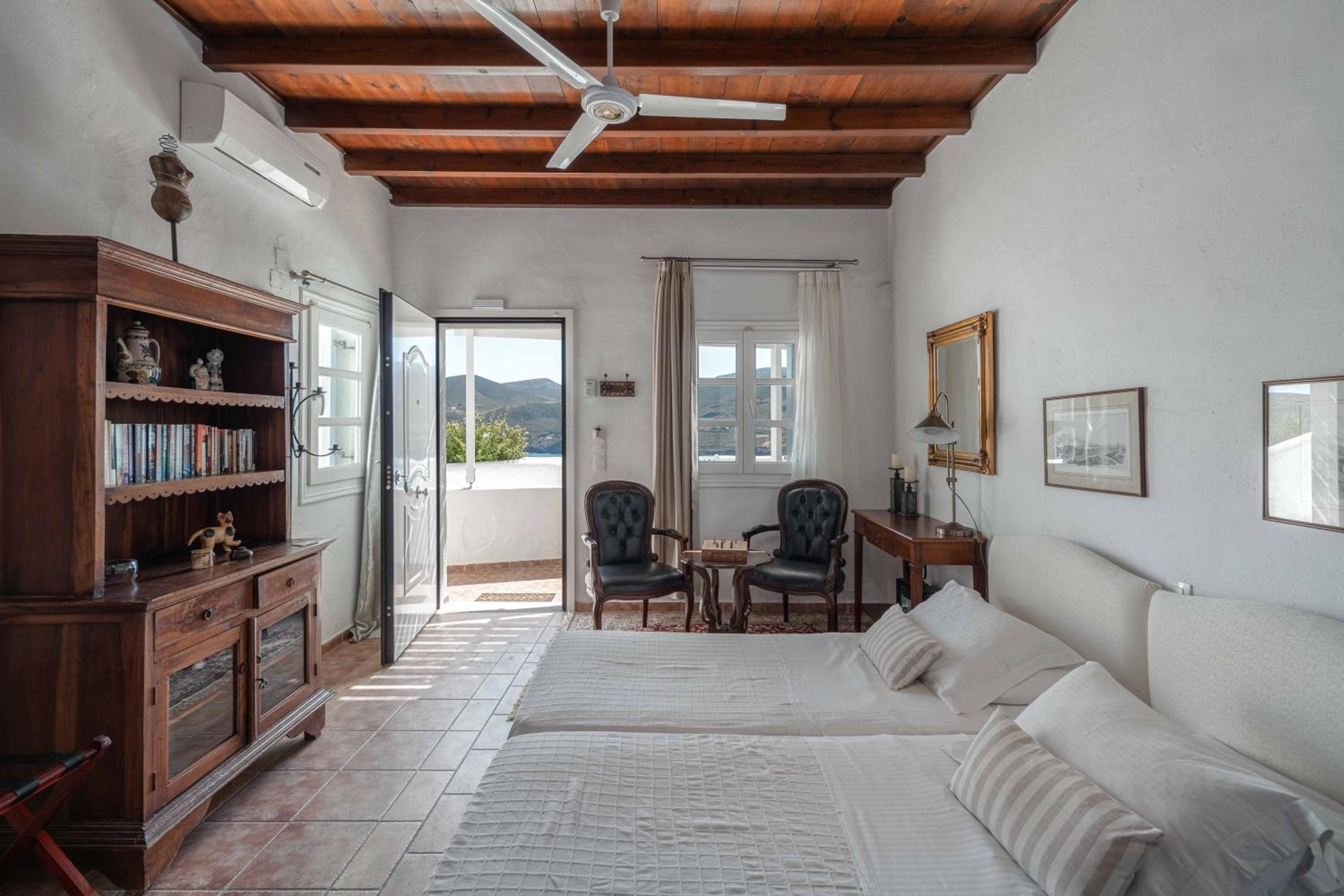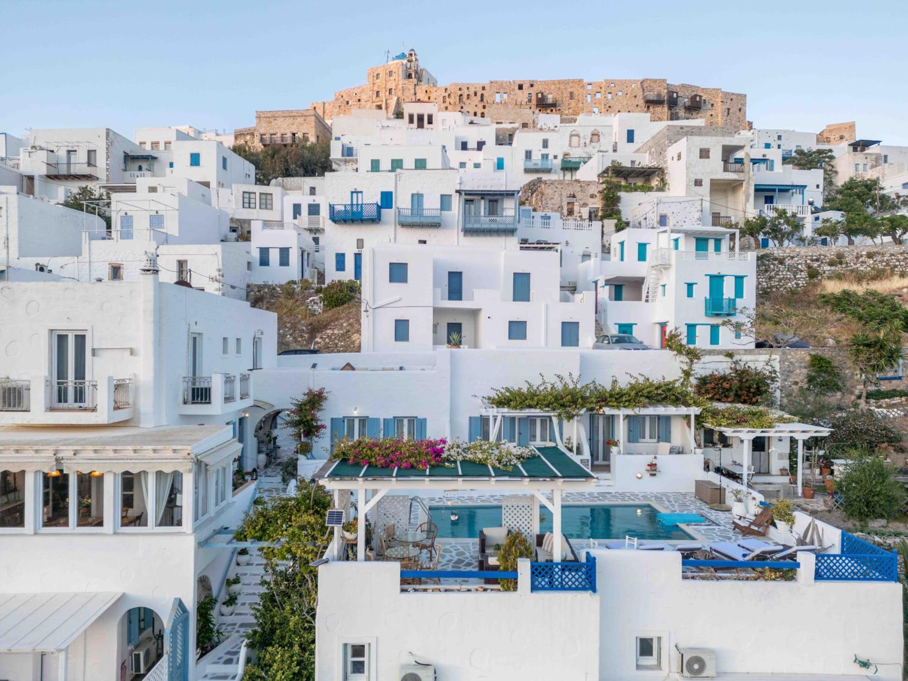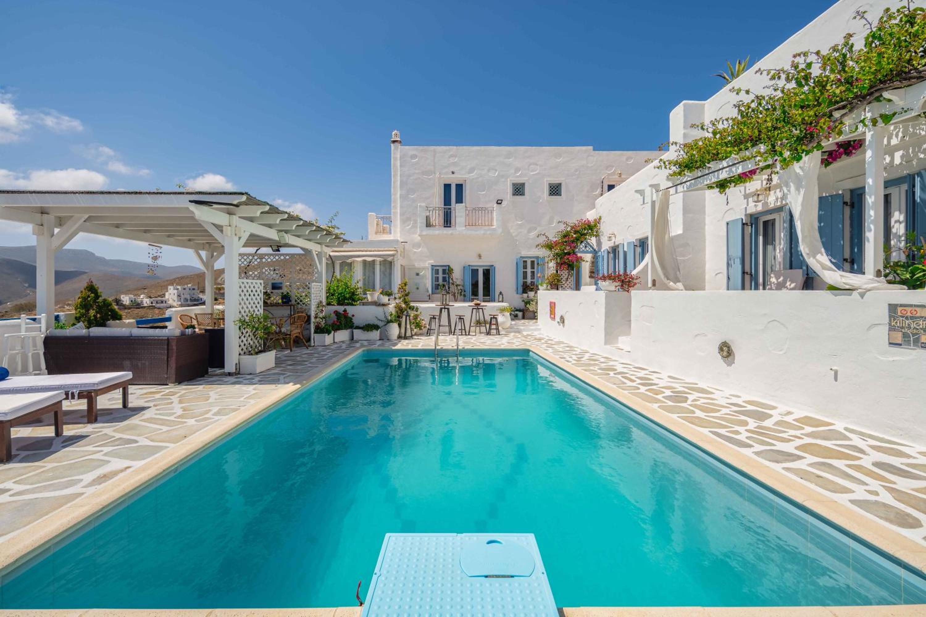 Charming boutique hotel with stunning sea views located in the heart of Chora. Beautiful courtyard/pool area with bougainvilleas. Good size room stylishly decorated. Stable WiFi. Continental breakfast included in the room rate. Some minor maintenance issues (ceiling fan, AC) needed attention. Recommend!