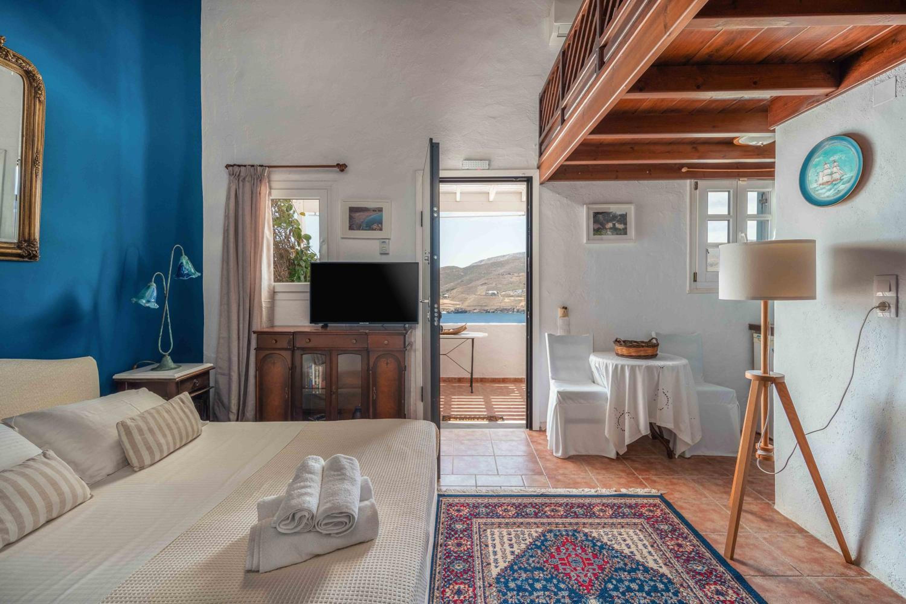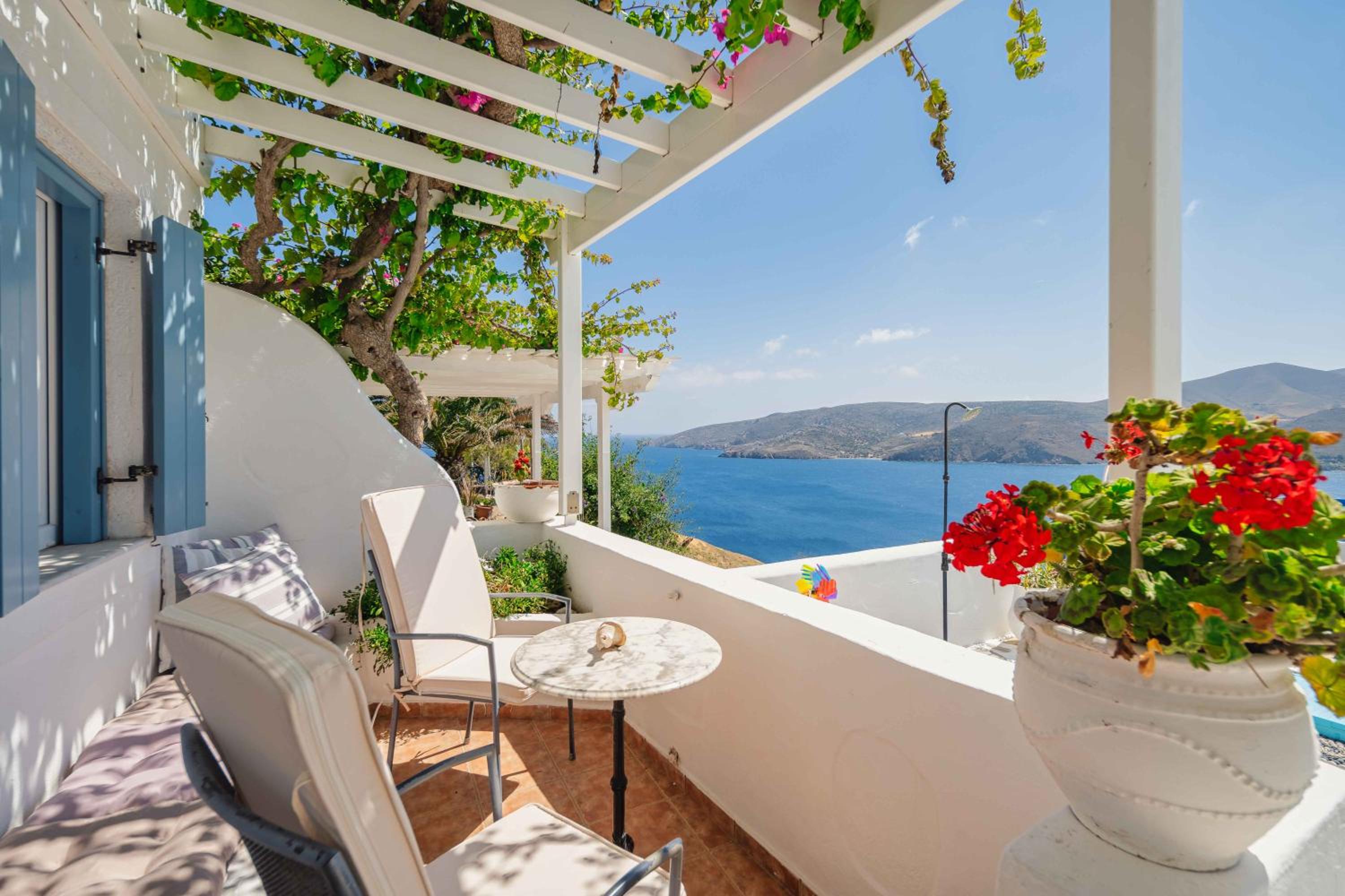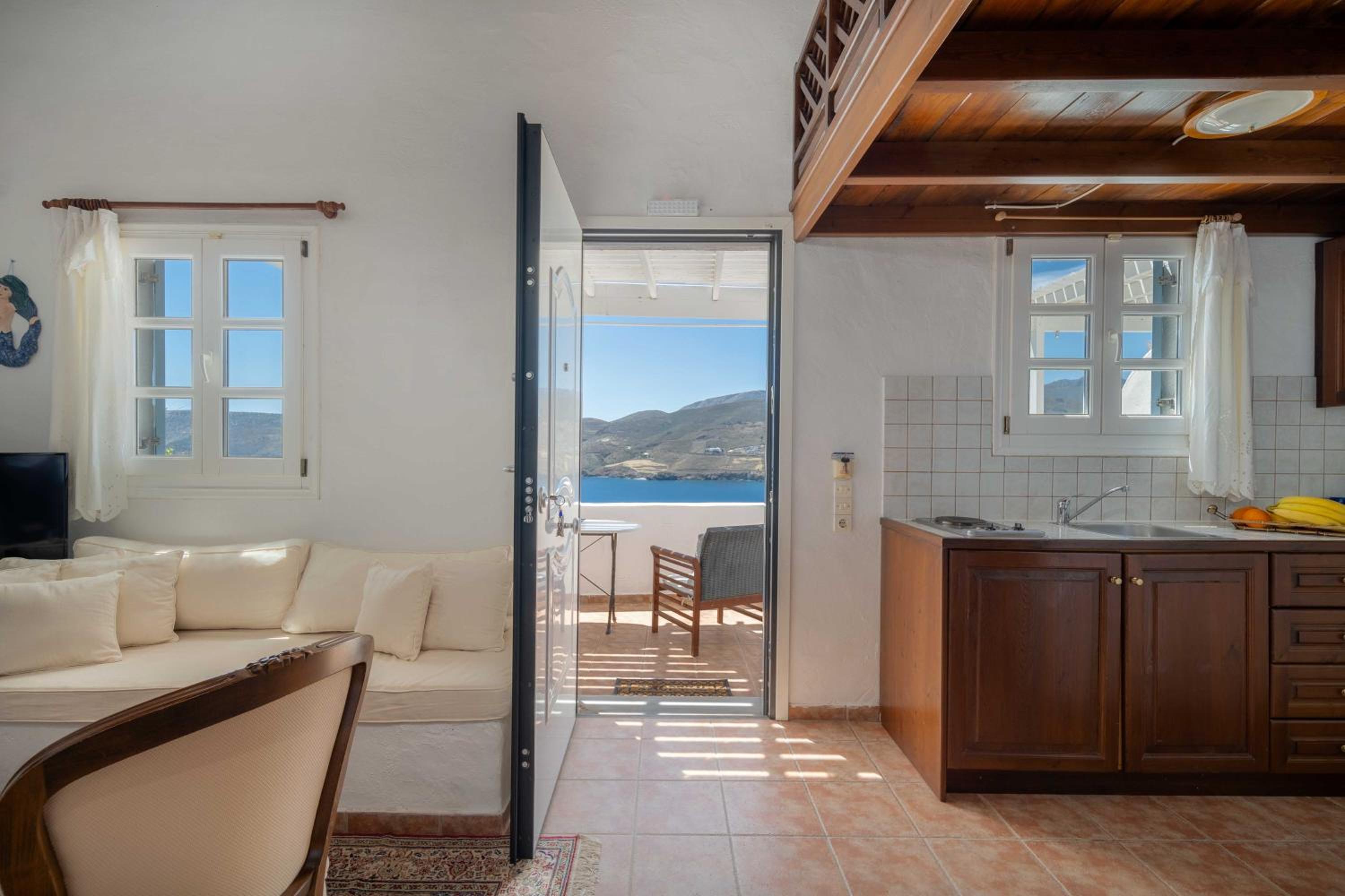 Studios Kilindra offers tastefully designed studios and maisonettes with private verandas, providing astonishing views of the Livadi Gulf and Aegean Sea.