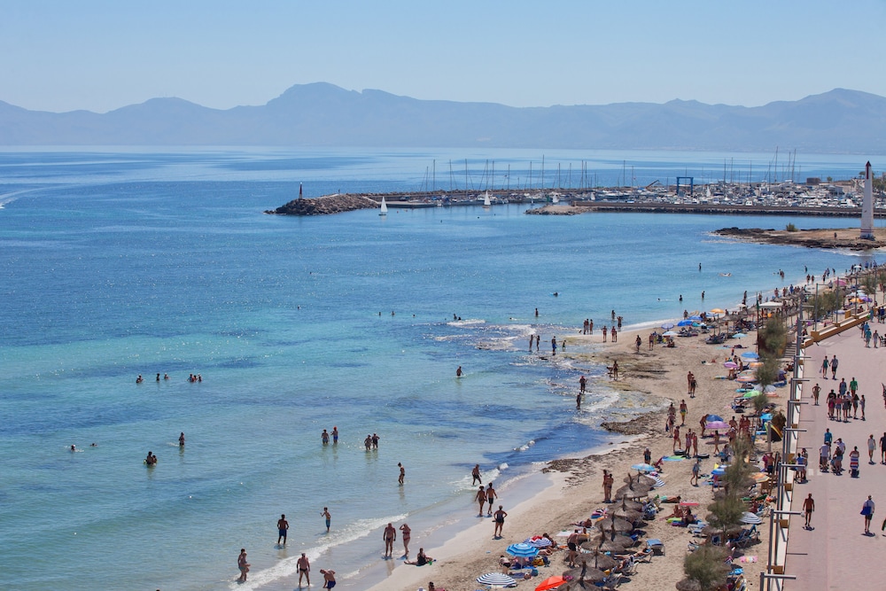 We really enjoyed staying at this hotel, the beach is amazing, the water can be very calm or it can have some waves it depends on the weather how windy is, breakfast was very good you’ll find something to eat as well for dinner, AC in the room was not great and also the rooms will need some remodeling, you’ll need to bring your own towel to go to the beach, also at the beach you can rent 2 chairs and an umbrella for 18.15 euros per day, plenty good places to eat and grab some snacks, we loved Can Picafort, very good for families.
