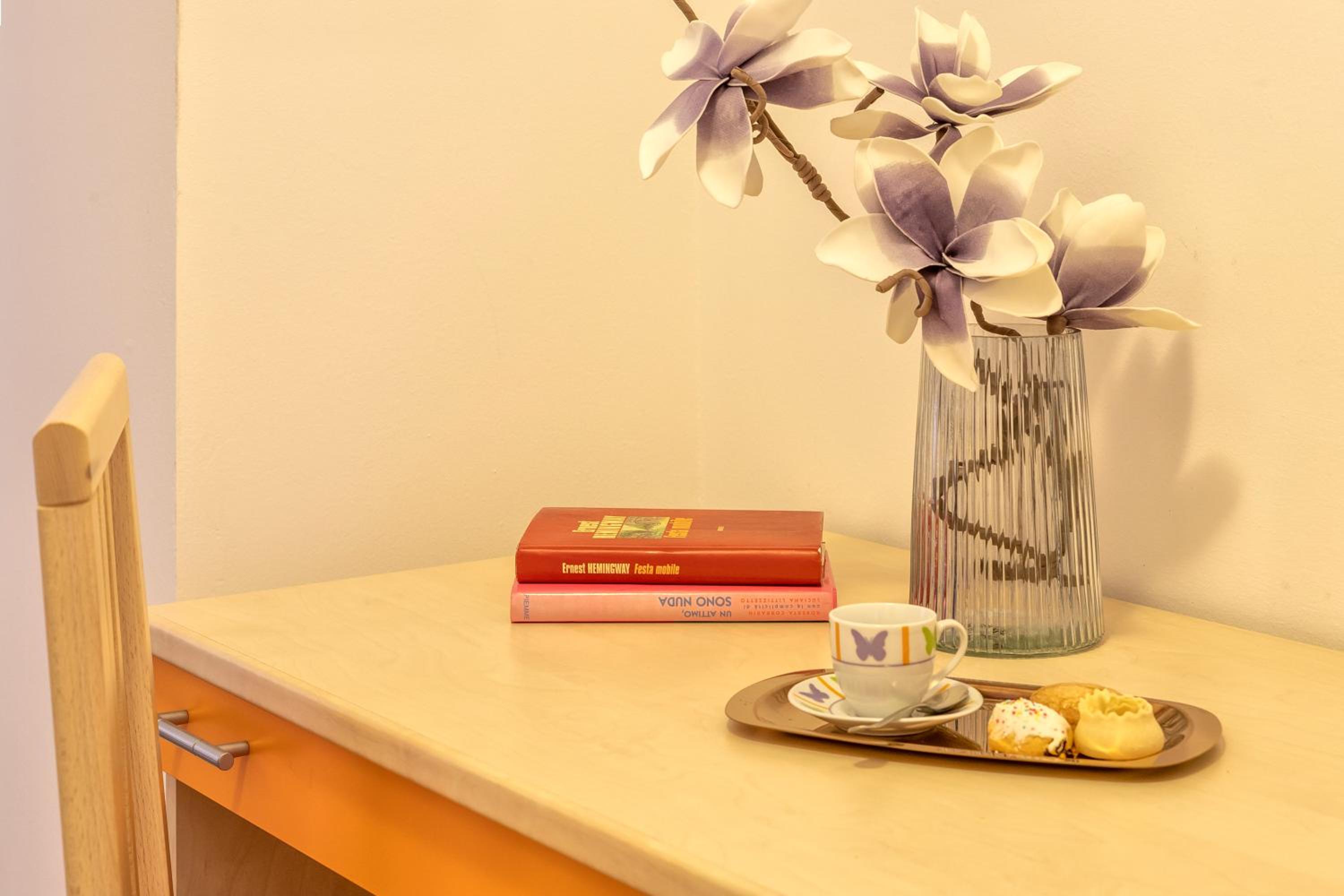 Byt bol pekný a pomerne v dobrej polohe vzhľadom na vybavenosť a blízkosť obchodov a zastávok autobusov, ak vám nevadí, že výhľad je len na okolité panelové domy a balkóny oproti, kde vidíte do tanierov vašich susedov. Na stole v kuchyni vás počká uvítací košík od majiteľky, ktorý obsahuje nejaké džemy, sucháre, cornetto, cukor, 2 kapsule do kávovaru a fľaša vína.