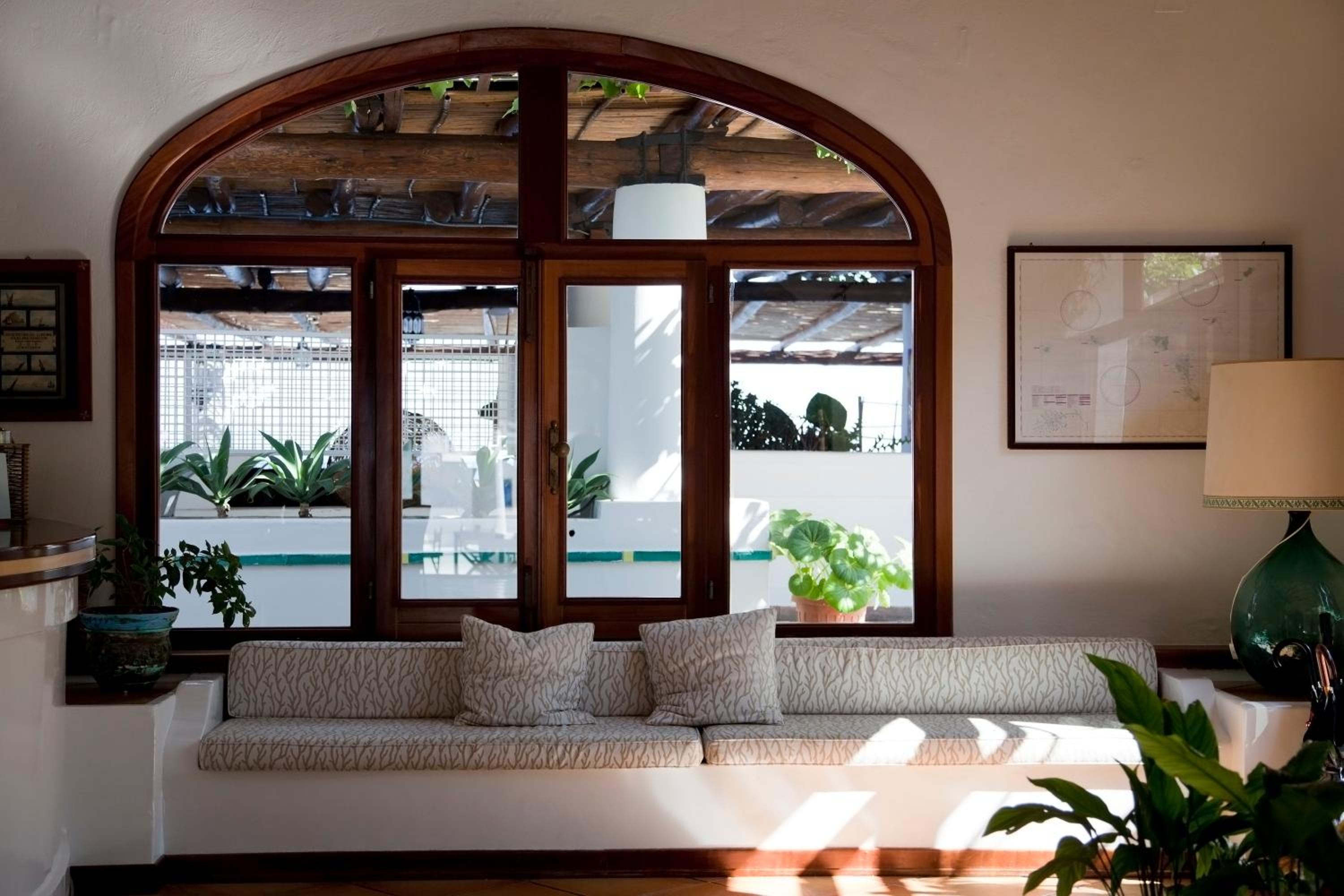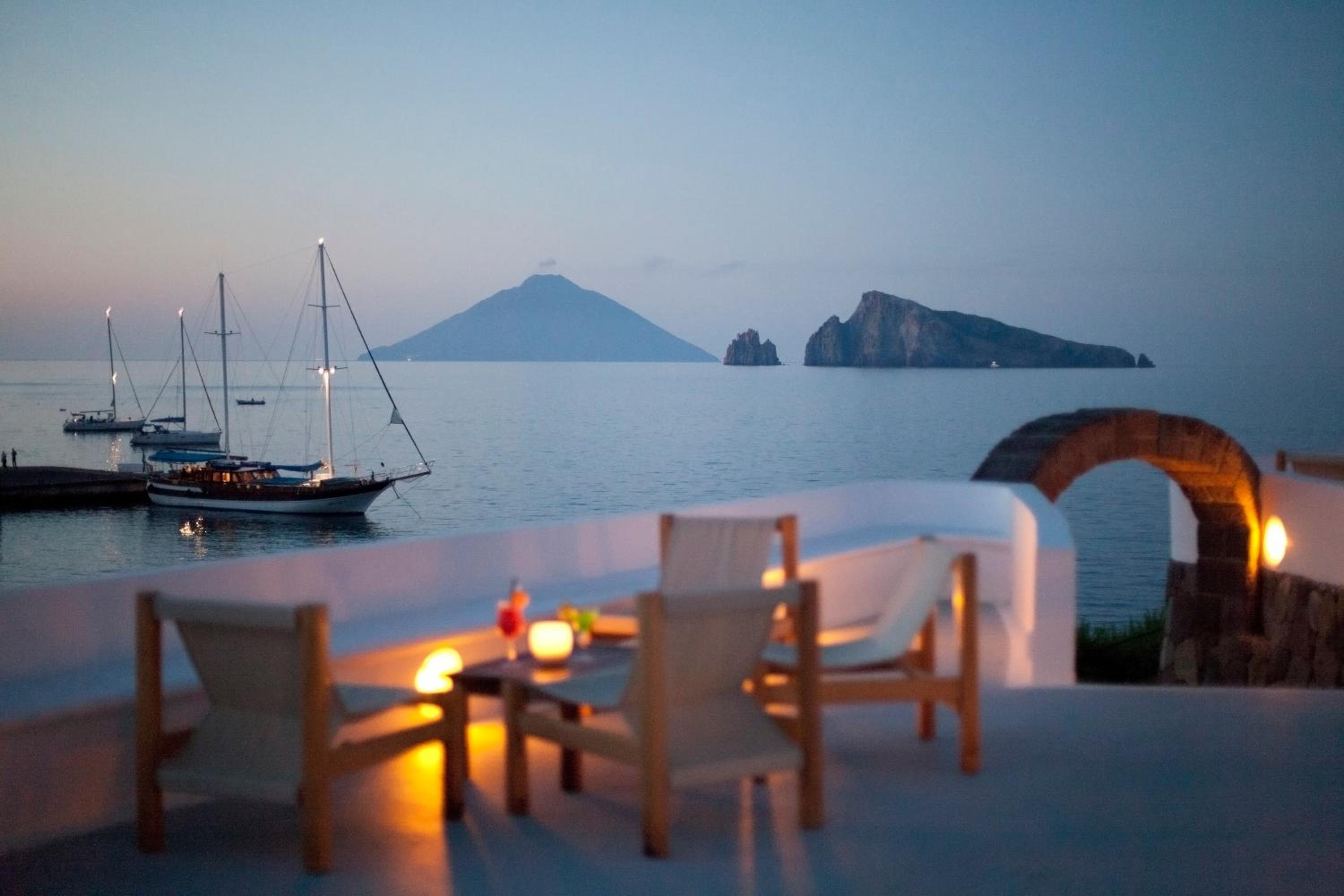With its traditional white exterior and interior walls, the hotel exudes an Aeolian charm. The Mediterranean decoration and wooden furniture in public spaces create a warm and inviting atmosphere for guests to enjoy.