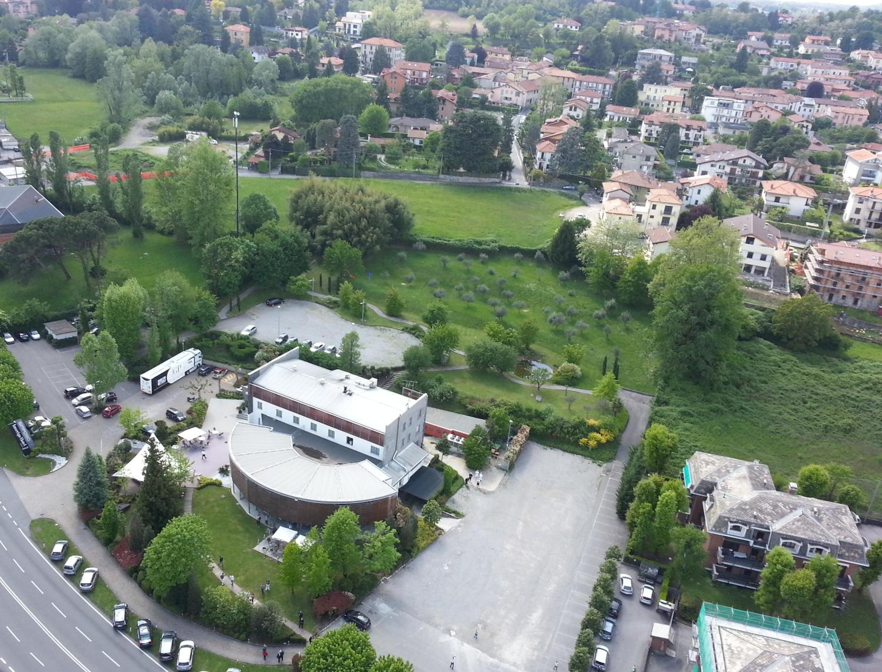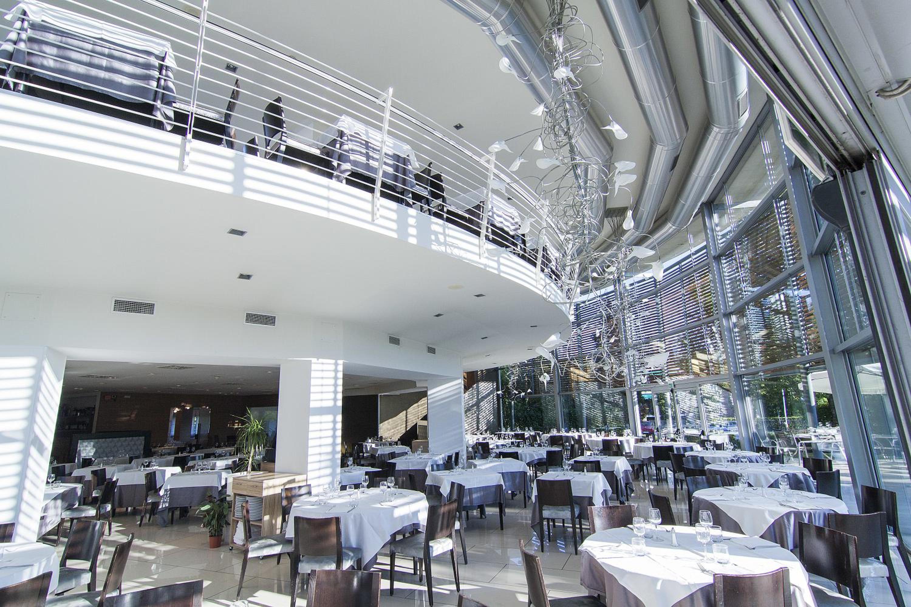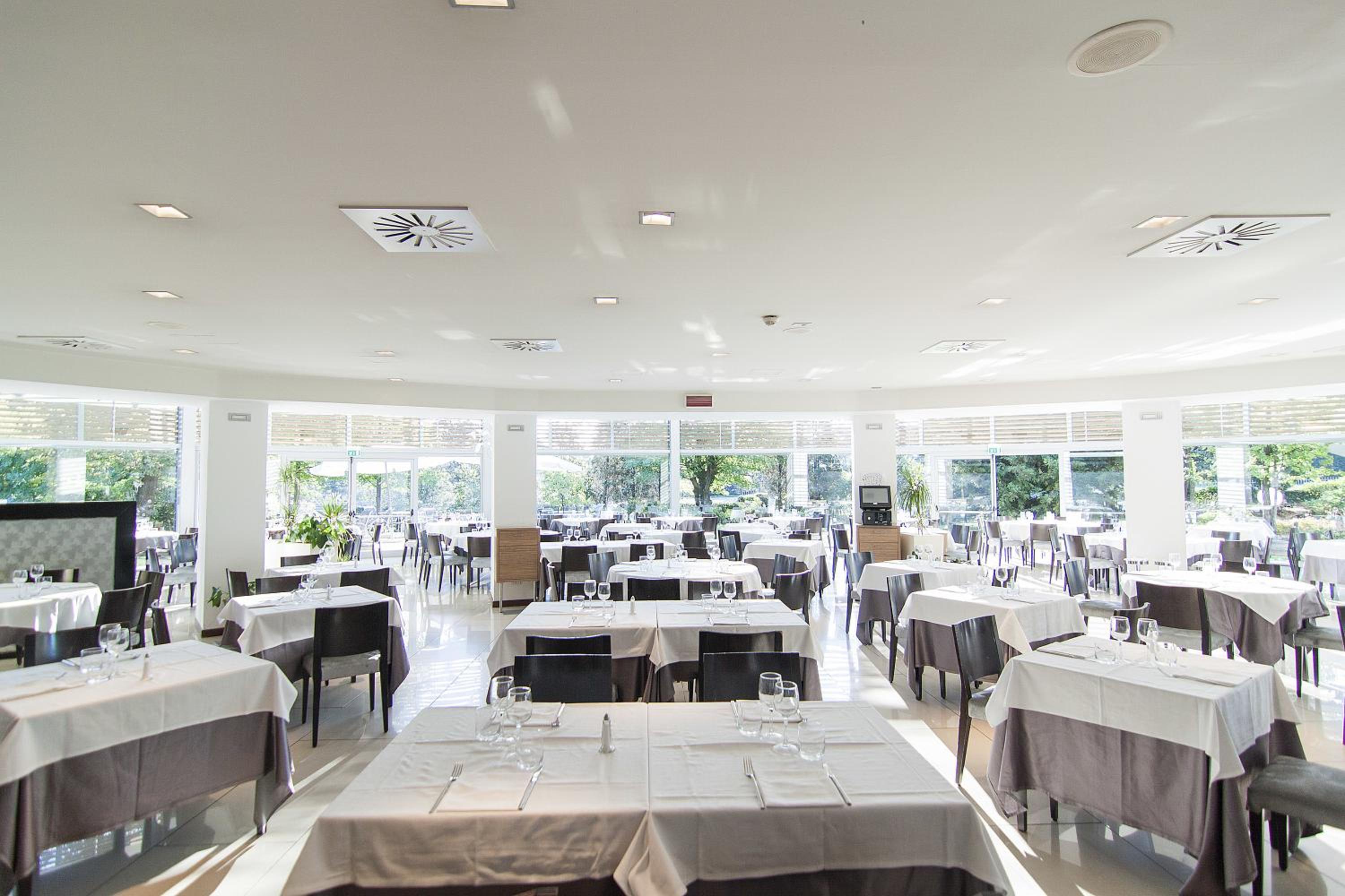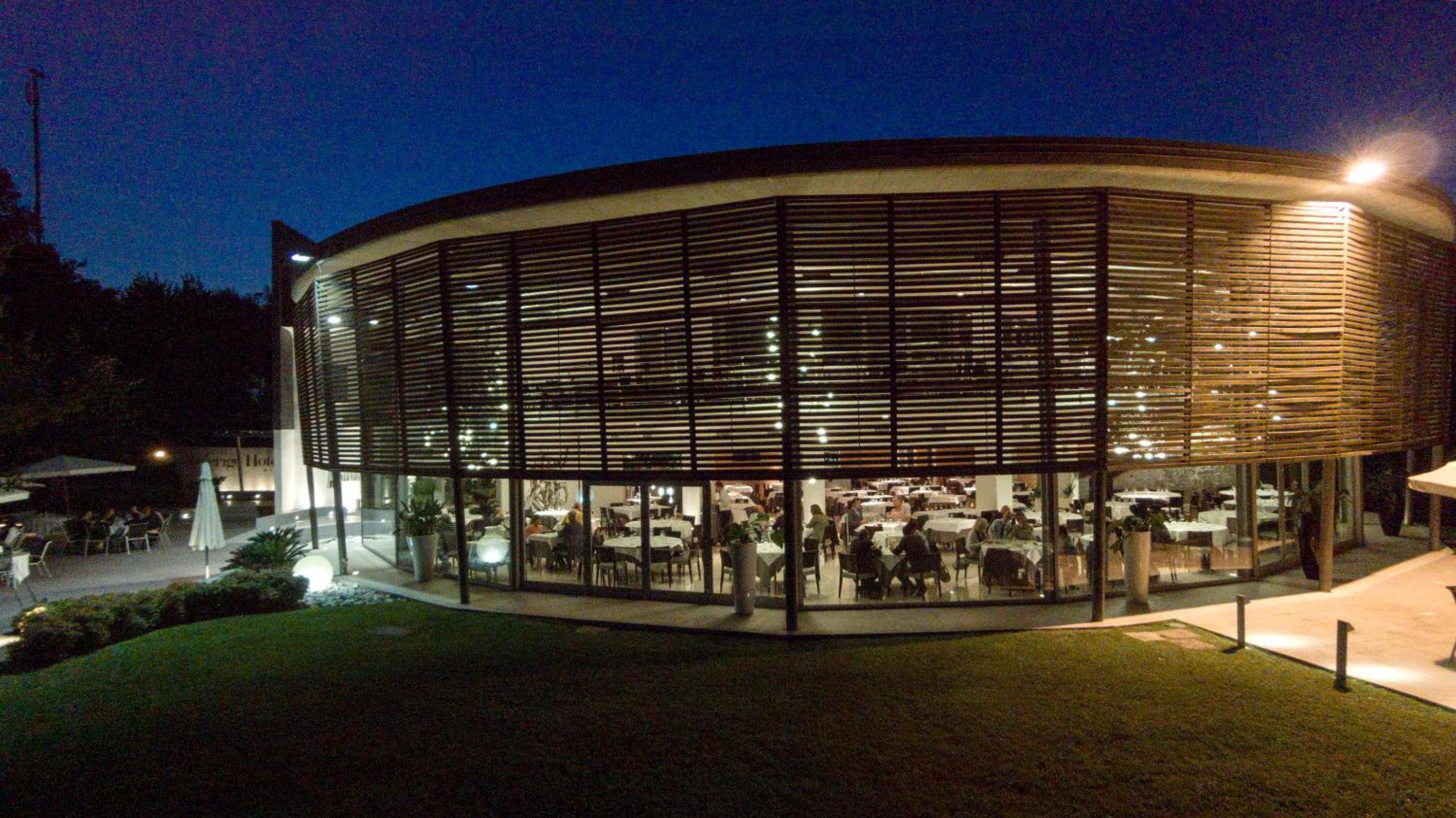 Parcheggio esterno e grande ristorante.