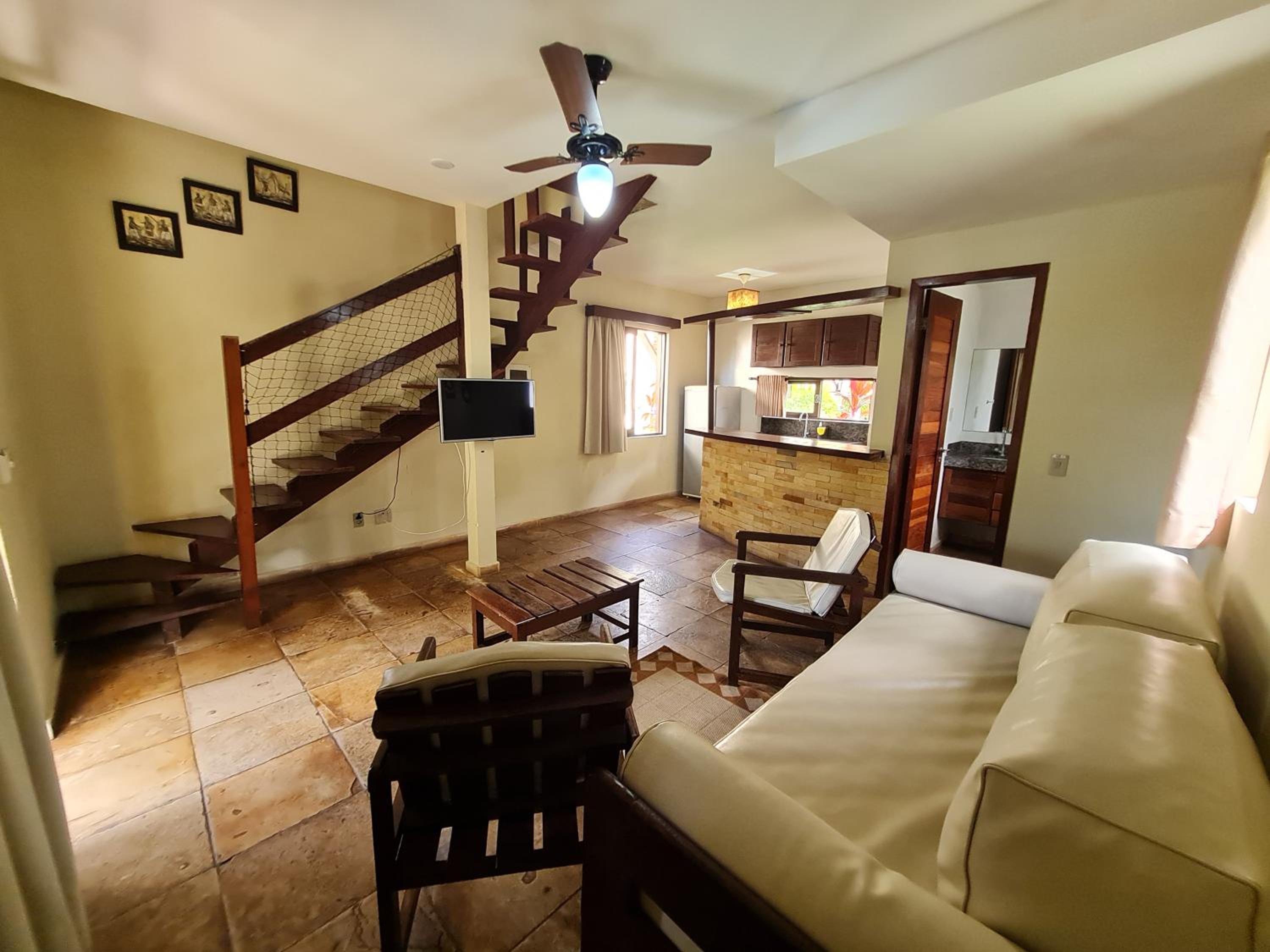 Dentro da acomodação, nos deparamos com o ventilador de teto da sala que não ventila nada, não tinha toalha de rosto e todos os dias eu tinha que pedir, a cama de casal estava com lençóis de solteiro, o lençol disponibilzado para a cama de solteiro estava todo rasgado, a porta da sacada do segundo quarto está fechada com cadeado (segundo informaram, é pq há um risco estrutural - o mínimo que se espera é que se resolvaa questão estrutural antes de disponibilizar a acomodação para reserva), a piscina está encardida (e só era limpa se pedíssemos) e o banheiro do térreo não tinha chuveiro (apenas o cano).