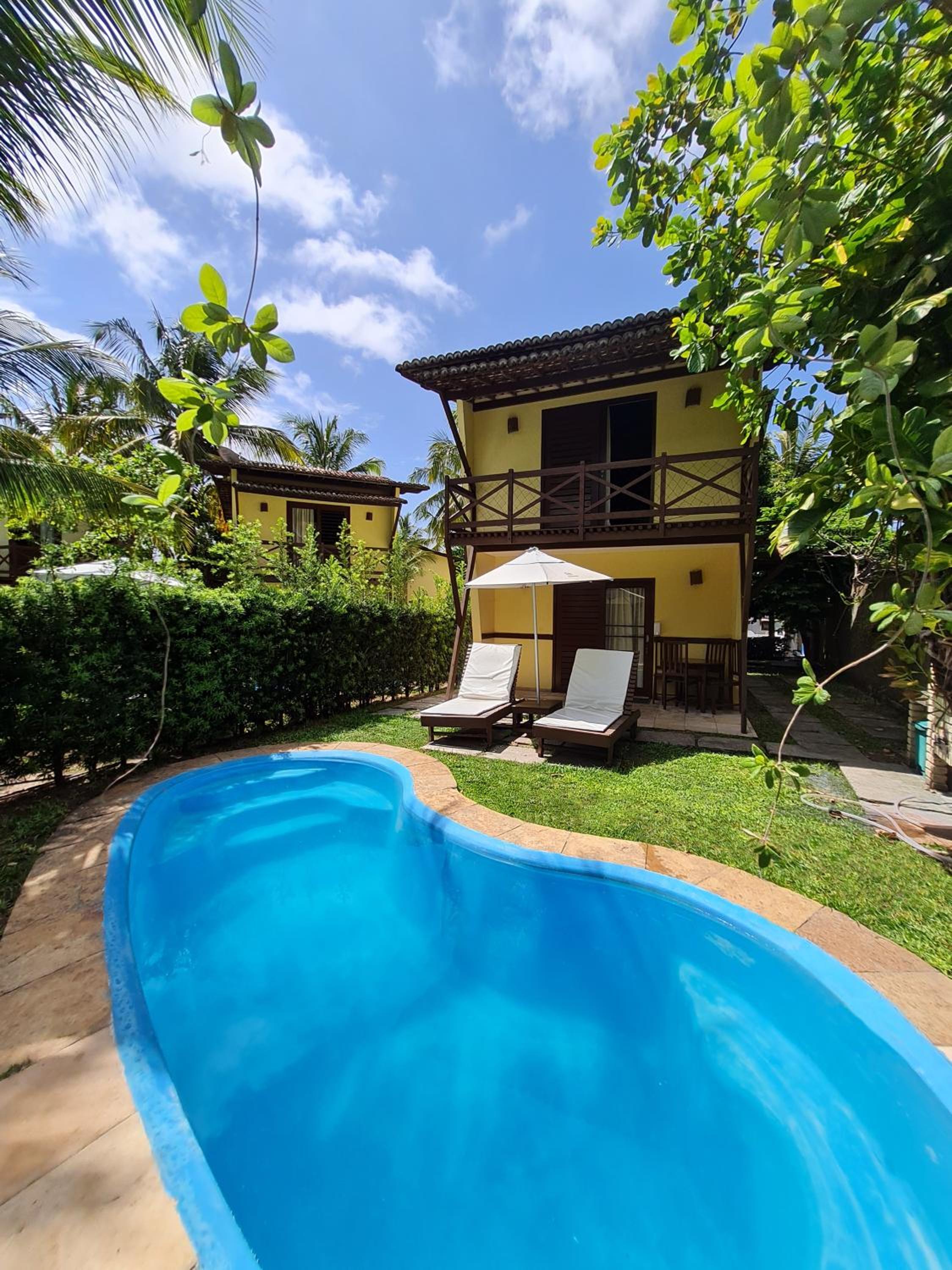 Tinha tudo pra ser bom, pois os chalés têm duas suítes em cima e sala, banheiro e cozinha embaixo, com piscina privativa. Porém, o serviço e a estrutura são péssimos. A começar pelo checkin. Chegamos antes da hora do checkin e fomos almoçar, com a promessa de que nosso chalé estaria disponível quando voltassemos as 14h, mas só pudemos entrar depois das 14h30, naquele que foi o terceiro chalé que disseram.que seria o nosso.