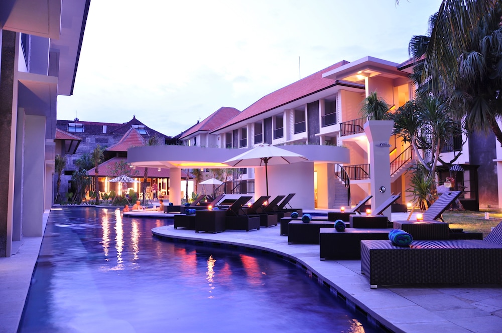 We arrived in after a long day, our check in staff was so helpful, even the security in the parking lot for the on site bar helped with our luggage. We had a great clean room, bathroom was exceptionally clean for Indonesia. Our room overlooked a beautiful pool. We were a little concerned as the street below was very busy and loud, however, our room was silent. We only stayed here for one night, but would again and would recommend. Walking distance to the beach and to the mall and so much more.