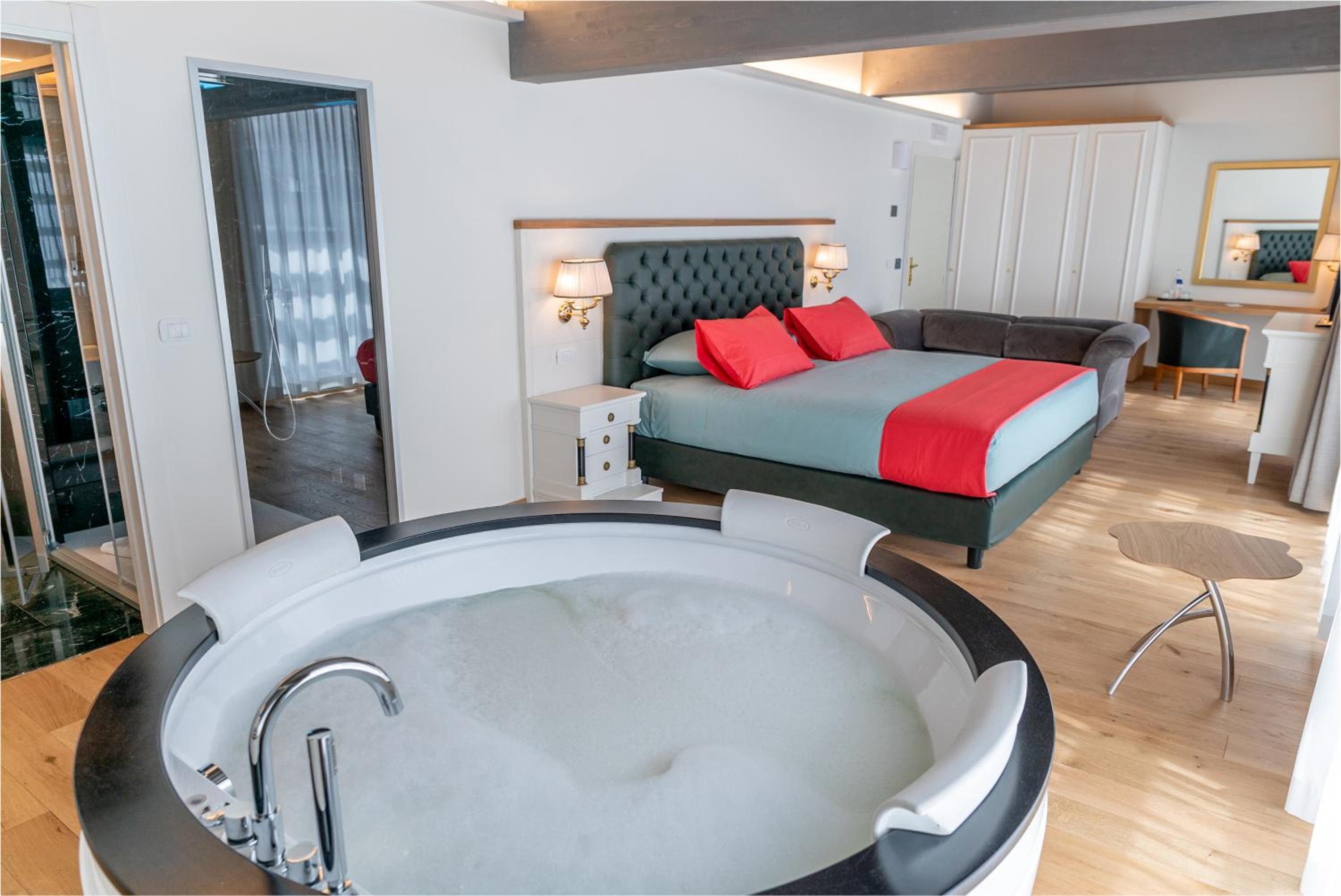 Wir hatte eine Suite mit Whirlpool und feuchte Sauna. Es war eine super schön ausgestattet, viel größer und schöner als auf dem Foto. Sehr schöne Terrasse mit Blick auf Alpen und eine Schaukel. Wir haben es sehr genossen und wollten da nicht weg. Frühstück war gut und wir hatte unsere separate Raum für die einige die Suit gebucht haben. Danke ich nett. Zu empfehlen!