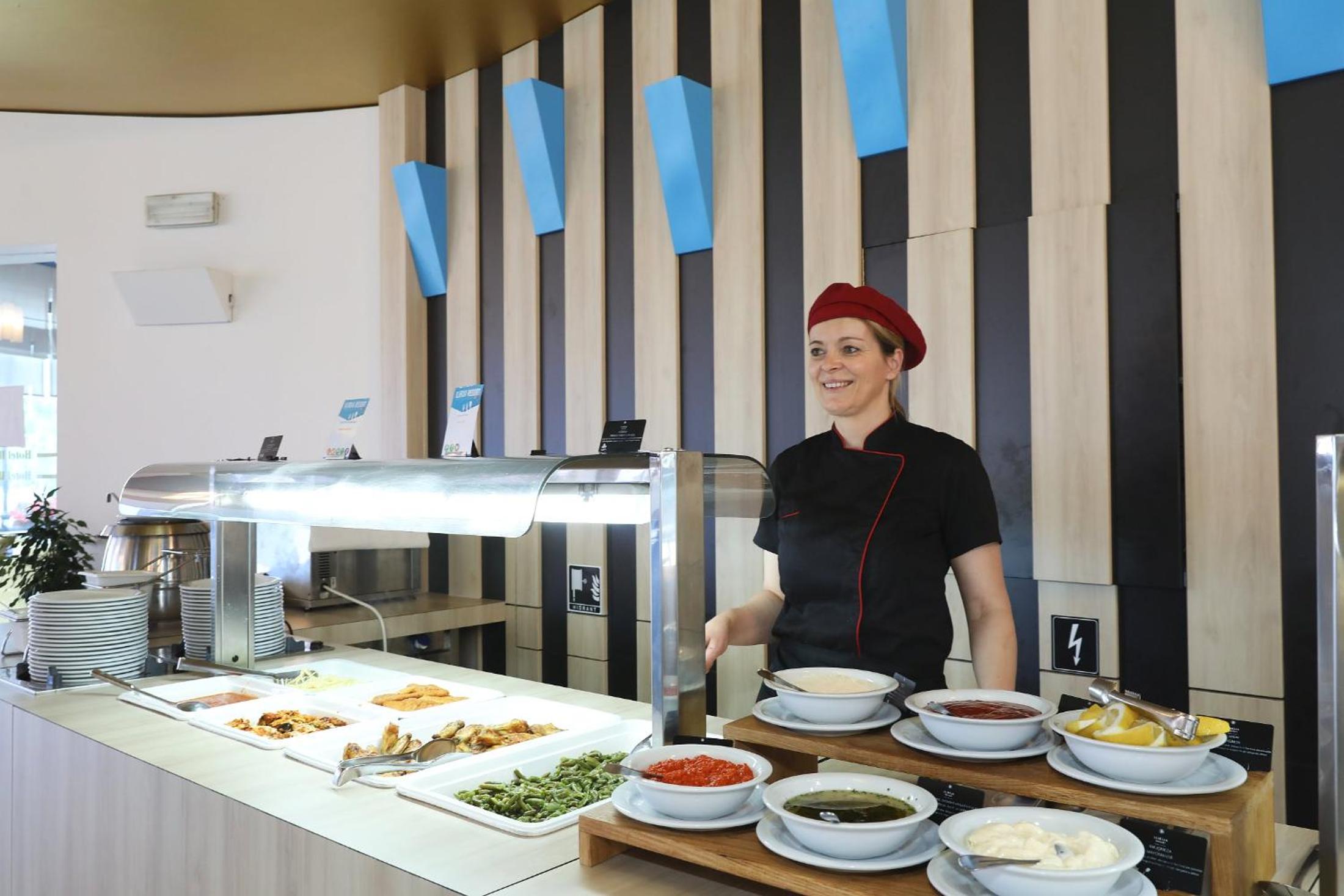 Veľmi dobré jedlo na raňajky, a veľmi dobré jedlo aj na večeru. Chorvátske špeciality, Pašticada super, lignja, chobotnica, teľacina, Dostačujúci výber nápojov, dobrý výber aj napriek tomu, že ešte nie je sezóna a hotel bol iba zčasti obsadený. Personál na recepcii veľmi prívetivý. Reštauračný personál úžasne priateľský až som mal miestami dojem, že sa nachádzam v mojej rodnej zemi. Perfektný výhľad na more a nočnú časť starého mesta.