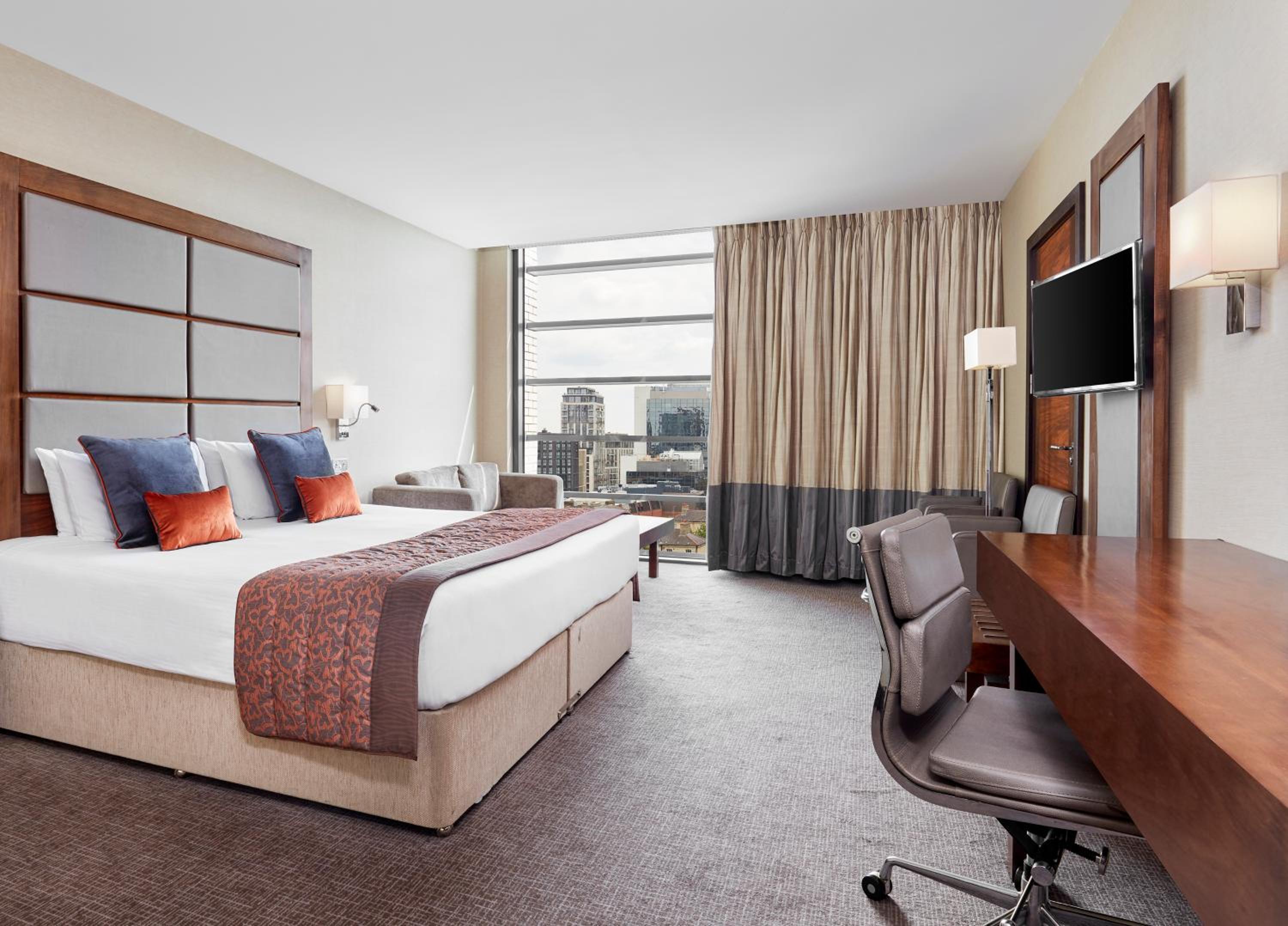 Experience luxury at its finest with spacious rooms featuring LED TVs, cosy bathrobes, and free Wi-Fi. Each room at Leonardo Royal London Tower Bridge is equipped with modern amenities like free WiFi, satellite channels, and a private bathroom with luxury toiletries.