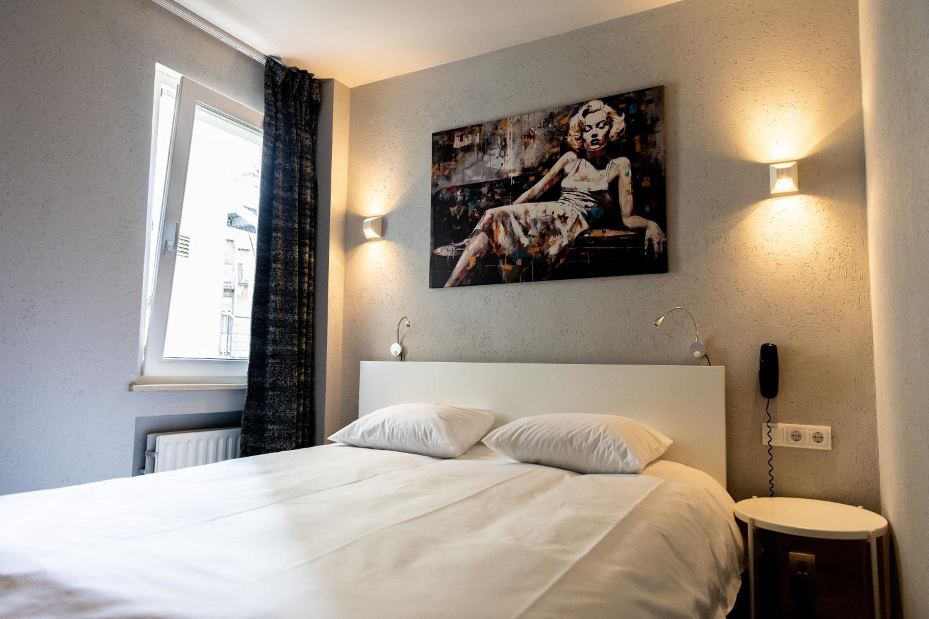 El personal era muy amable. Tienes botellas de agua y una máquina de café y chocolate gratuita durante todo el día, que cuando llegas de la calle con tanto frío da gusto tomarte sentado en las mesas que tienen cerca de recepción q también es donde se desayuna. La habitación es bastante pequeña pero está muy limpia y la cama es muy cómoda. El hotel está muy bien ubicado, cerca de la estacion de trenes y muy cerca de las estaciones de autobus, en muy poco tiempo estás en el centro de luxemburgo.Relación calidad precio excelente