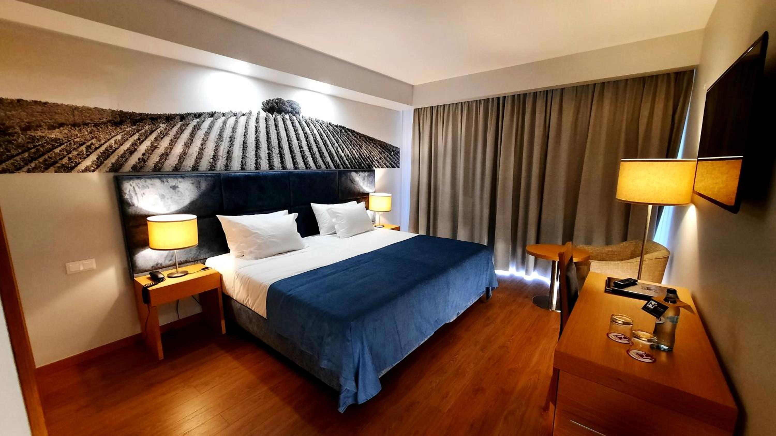 Each room at BejaParque Hotel offers a modern and cozy retreat with amenities such as a satellite TV, minibar, and a private balcony overlooking either Beja or the picturesque Alentejo countryside.