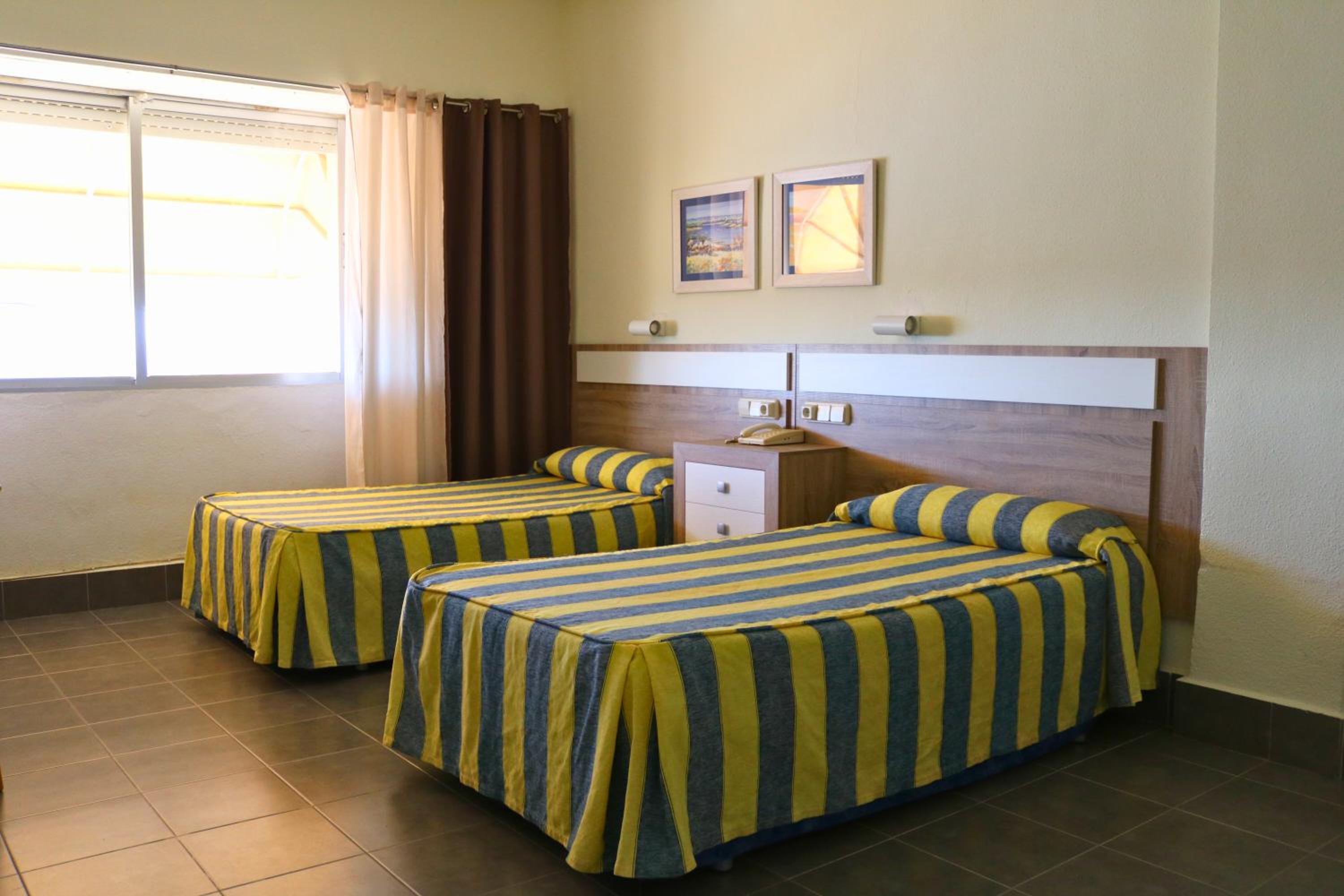 Water off at check-in told fixed one HR went to rest then had food then asked again still off can't flush toilets or have shower or wash hands. Went to bed 5am needed toilet all hotel smelling of poo still no water at all went downstairs asked for bottle water so I could freshen up and flush down my toilet refused. Asked again got told pay cash asked how much told 2 euro ps 2 euro had a sip of water and man said if I pd 3euro could have had big bottle. Left hotel as they said nothing can be done til 8am when receptionist arrives, went back 8am no water no help still serving food and drinks but staff can't wash hands asked for refund of next two nights and to go to sister hotel no help expedia.com in end rang them four times went to Dos Playas sister hotel they were lovely and let me have breakfast and freshen up but we're fully booked, booked elsewhere and had to get taxi, Expedia got hotel to refund eventually two days later awful