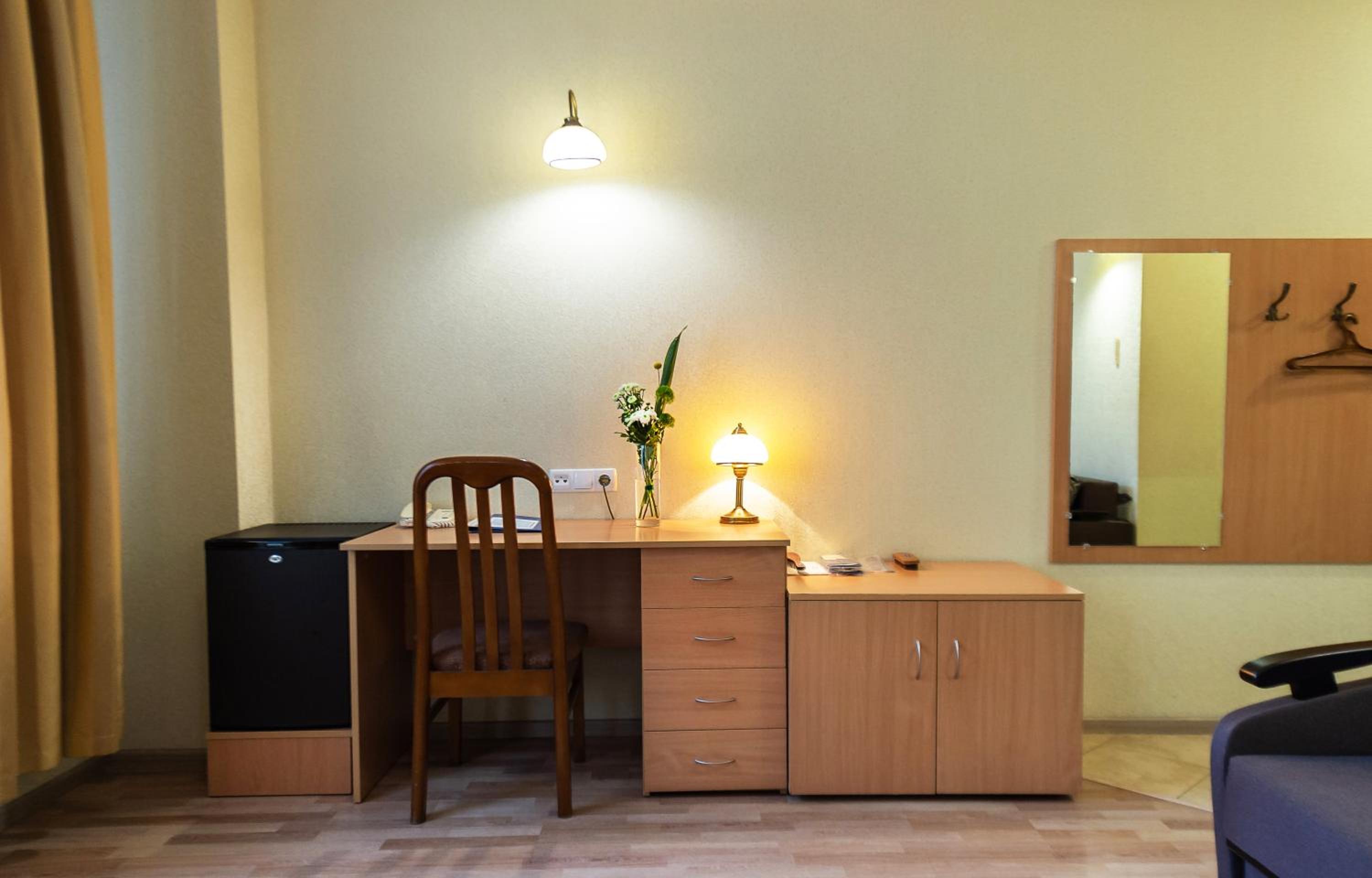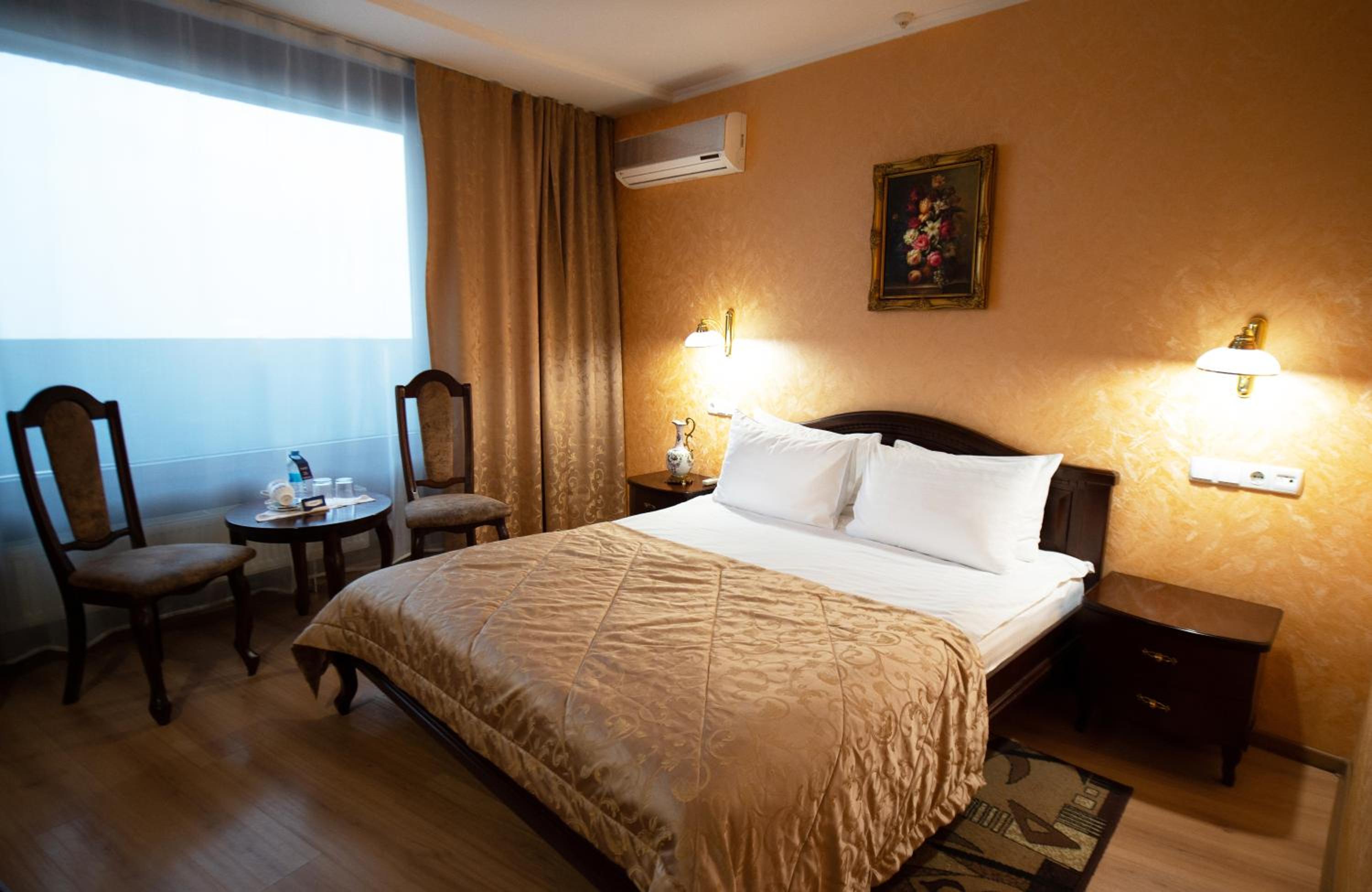 Each room boasts warm decor, air conditioning, a minibar, and satellite TV. The bathrooms are stocked with complimentary toiletries and cozy slippers. The on-site restaurant offers a delectable selection of European and Ukrainian cuisine, while the café serves delightful hot beverages and fresh pastries.