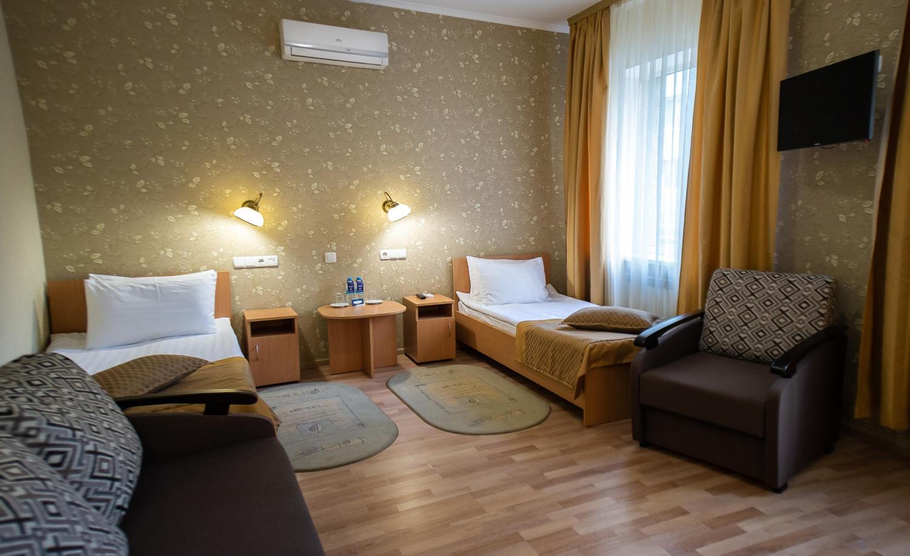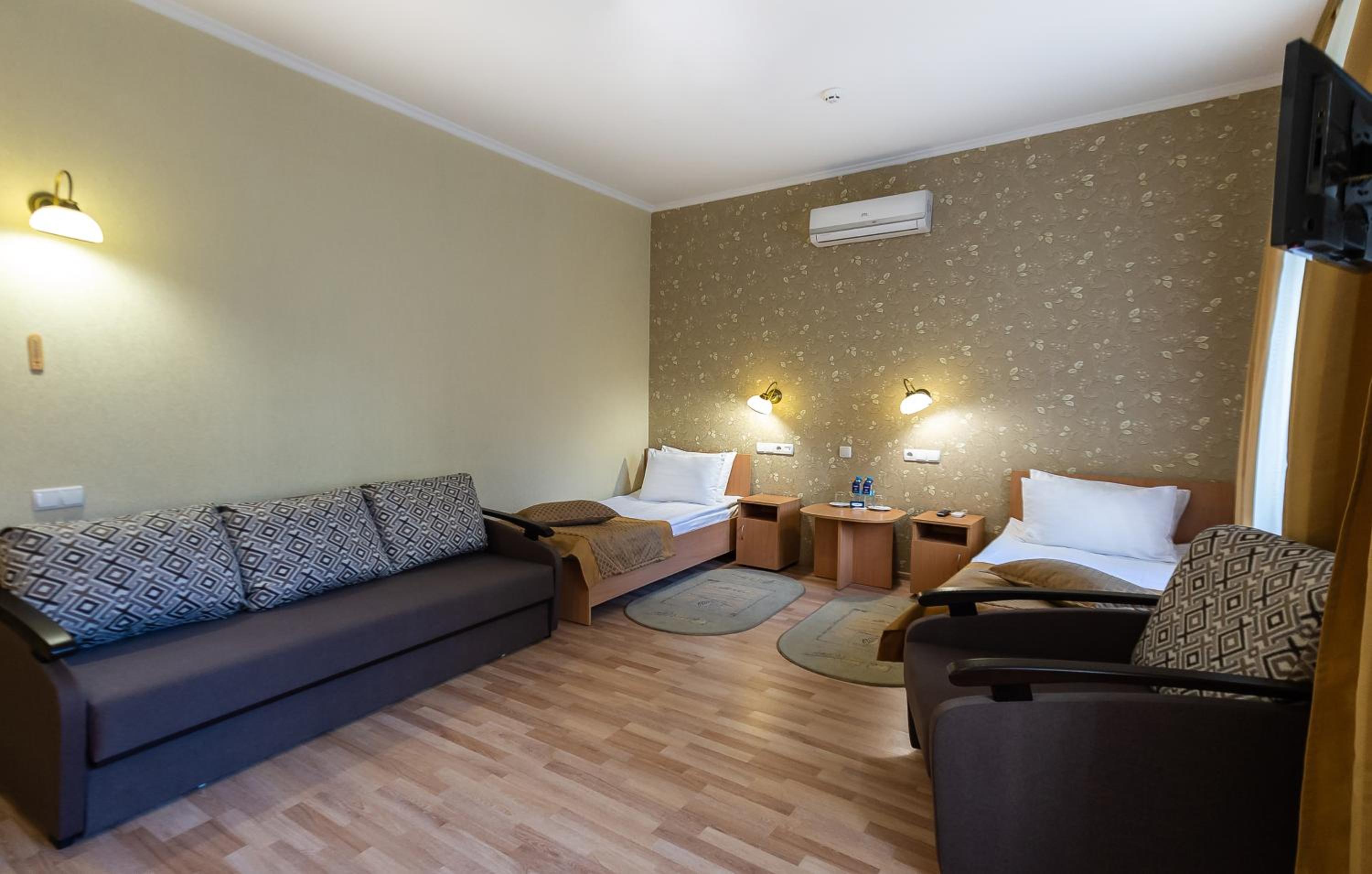 Взимку у номерах дуже холодно. Опалення за рахунок обігрівача, але якщо у вас дві кімнати, одного обігрівача мало. Відключають світло так само, як і скрізь, і відповідно в номері ще холодніше стає. Також у номері відсутня газова плита та чайник, тому навіть чай у номері не приготувати