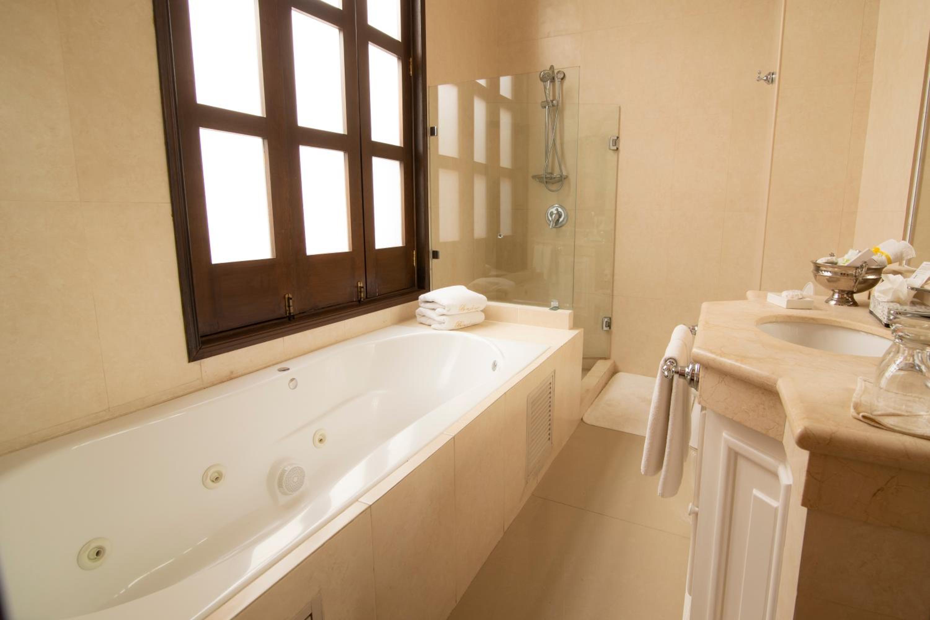 Elegant Rooms with Premium Amenities: Each air-conditioned room at Palacio Borghese Hotel Boutique is tastefully decorated with luxurious furniture and offers a hydromassage bathtub, satellite TV, and plush feather pillows for ultimate comfort.