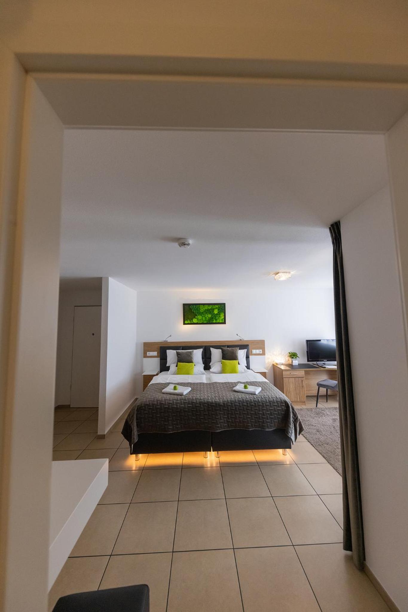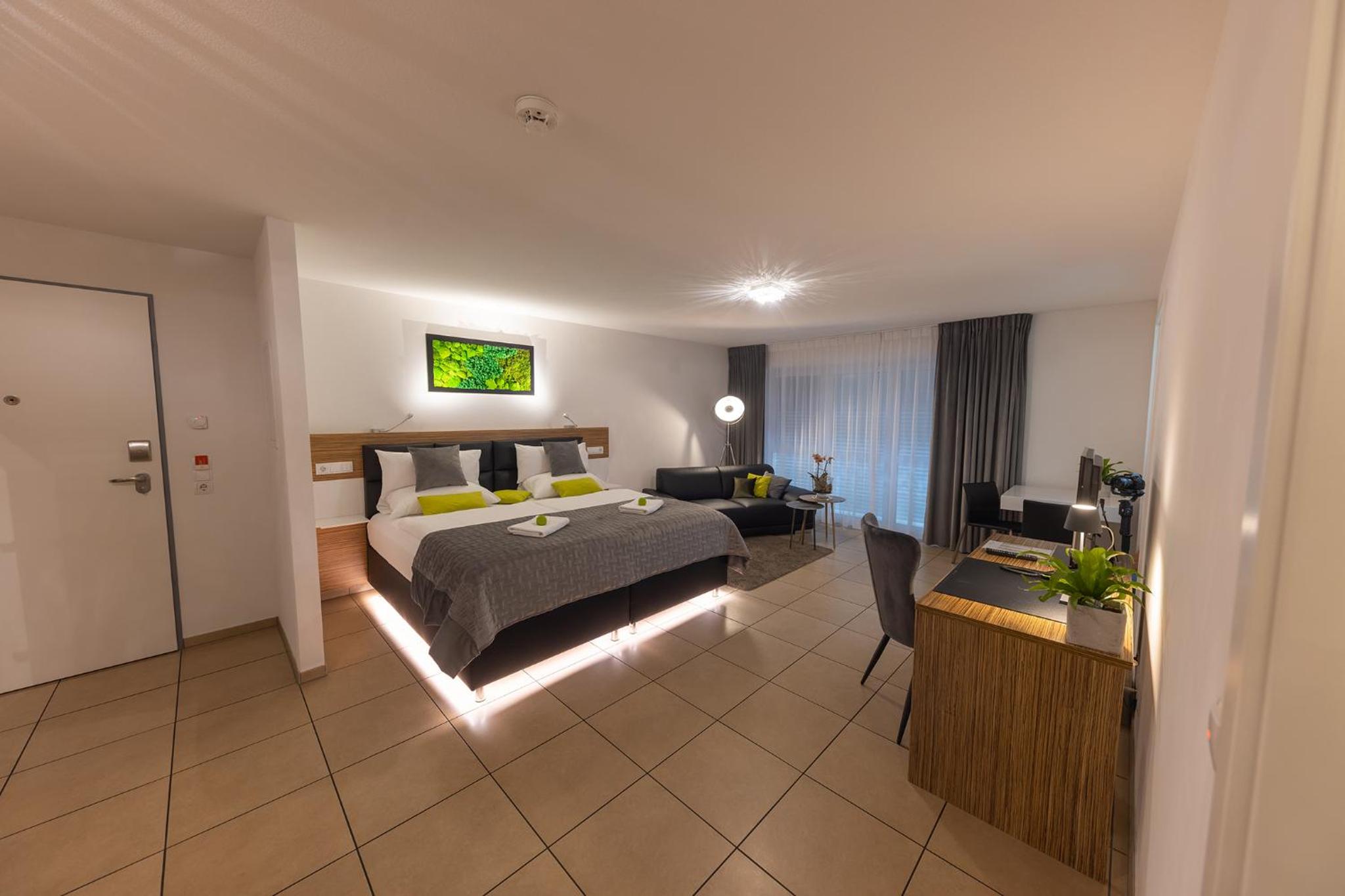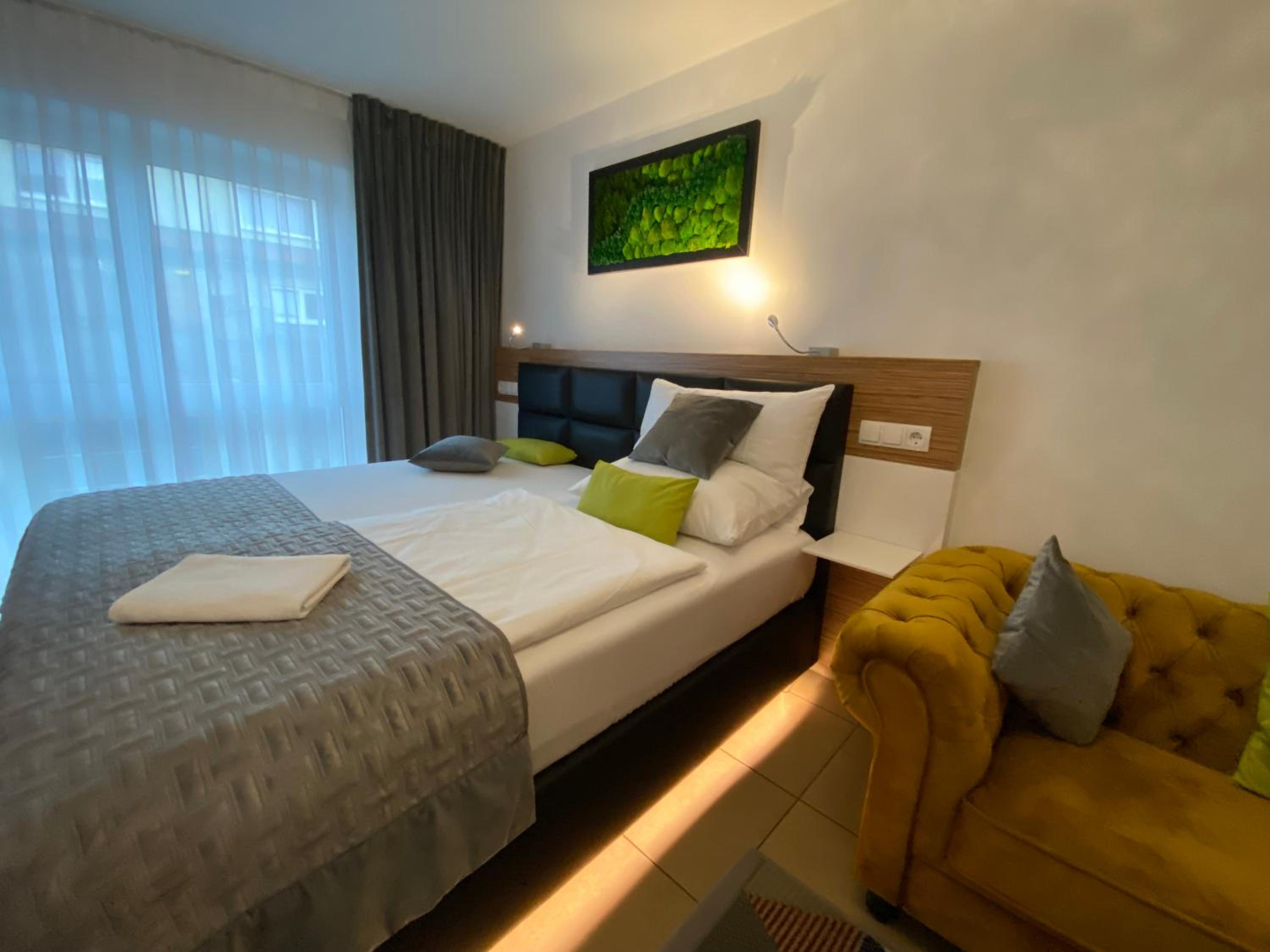 Moderne Einrichtung, bequemes Bett, sehr großer Balkon, einfaches Einchecken - super Preis. Top Lage, Innenstadt schnell zu erreichen.