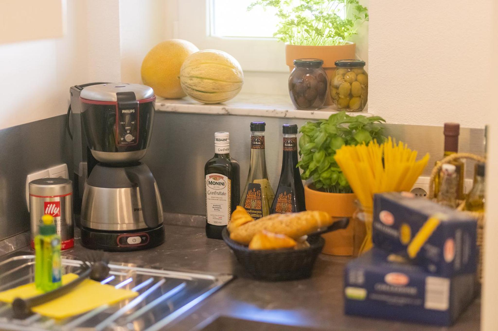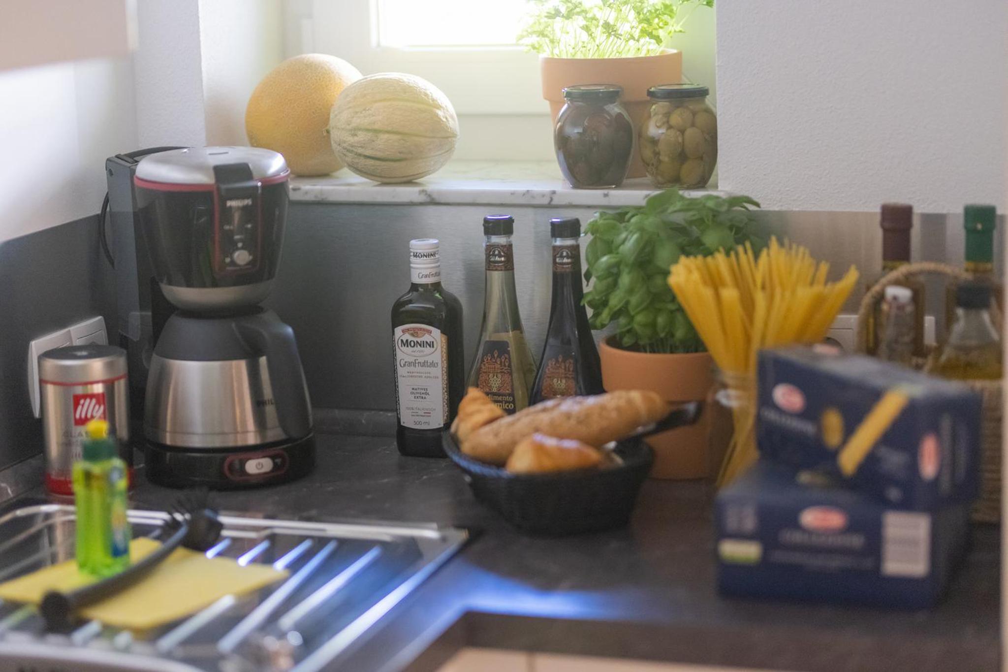 In der Miniküche alles da was es für Selbstversorgung ohne kochen braucht.