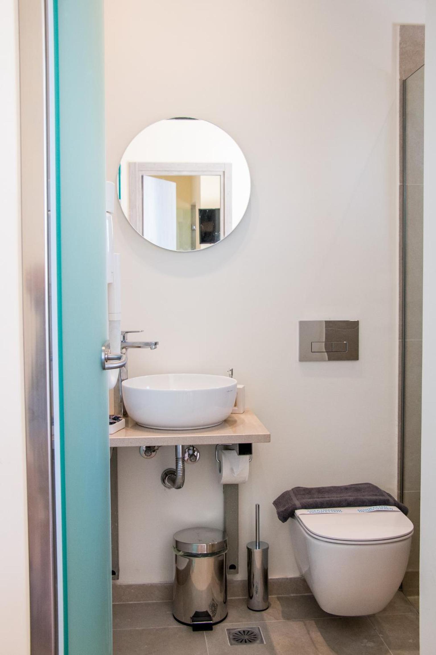 Die älteren Holztüren zum Zimmer und Bad sollten bald ausgetauscht oder gedämmt werden, da sie recht laut schließen. Das eine oder andere Bad könnte eine Renovierung vertragen.