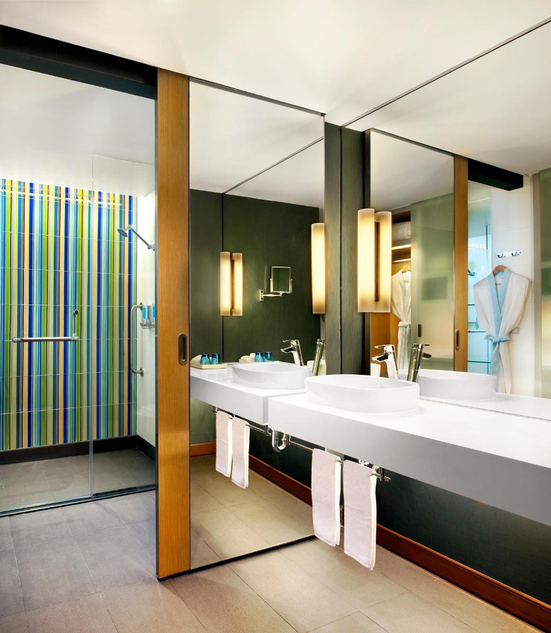 With nine-foot ceilings, large windows, and a sleek design, the air-conditioned rooms provide a spacious and contemporary ambiance. Enjoy entertainment on a 42-inch flat-screen TV, an iPod dock, and complimentary bottled water. The bathrooms feature walk-in showers and premium toiletries for a luxurious stay.