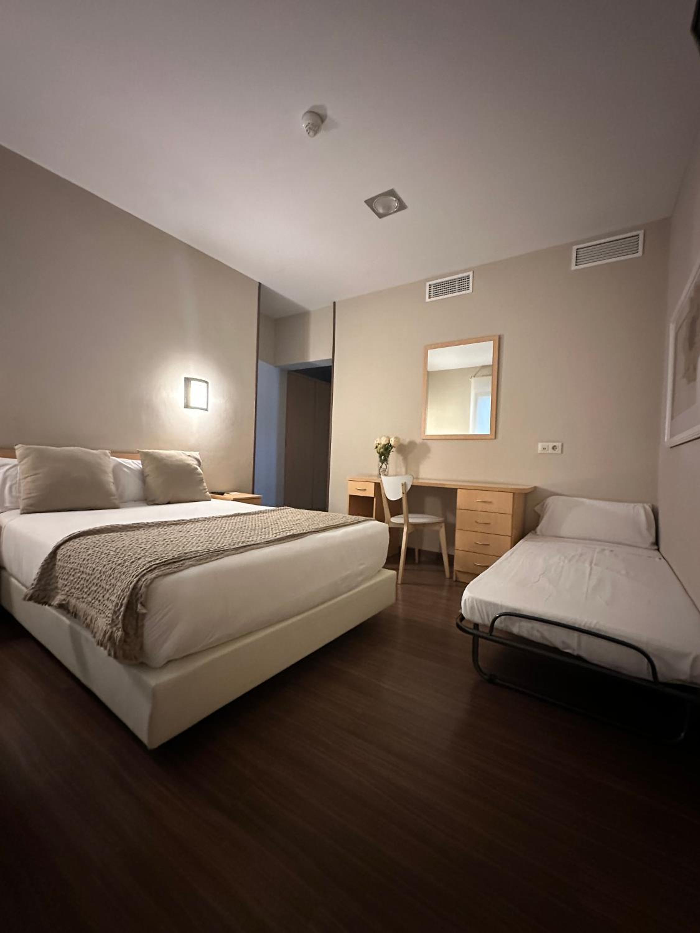 The lady on the reception when I checked in was very helpful and welcoming. She spoke English which helped due to my Spanish not being the best. Even though they don’t do breakfast there (hot drinks and vending machines only) I was informed of a place that opens from 7am where I could get breakfast and it’s on the same street. Building look new inside and out.