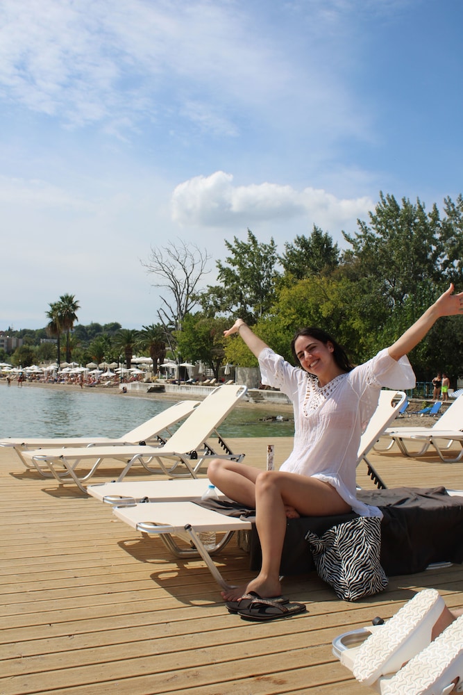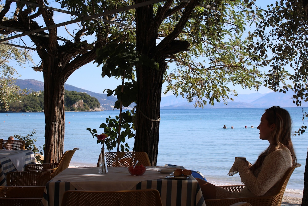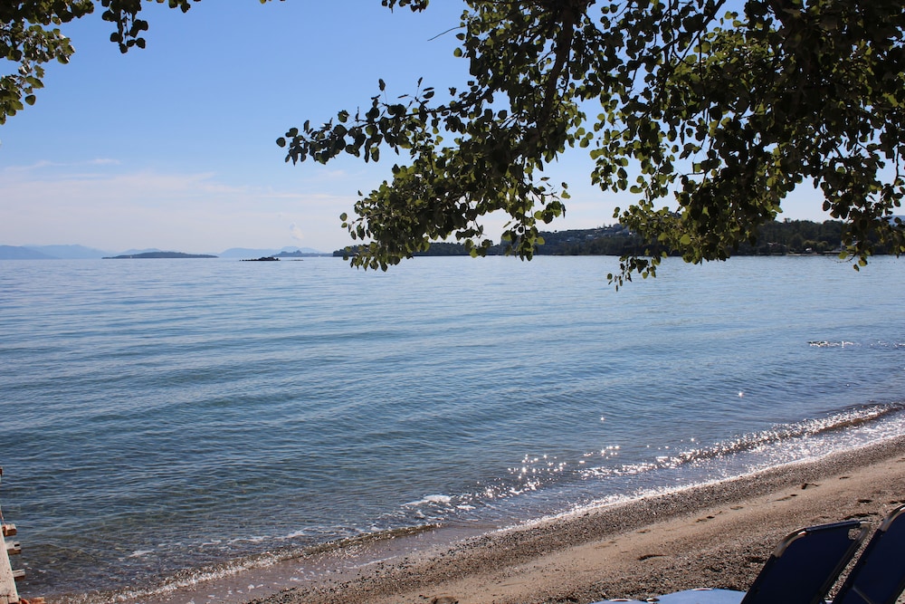Veldig koselig og søtt hotell, egen brygge ut til havet med gratis solseng hvis du bor på hotellet! Rommet var helt vanlig med god air condition. Veldig sentralt med buss til Corfu Town, som går hvert 20 minutt fra supermarkedet litt lenger opp i gata. Det er også lett å leie moped eller bil, det kan man få hjelp fra hotellet. Det er muligheter for å ta ulike båtturer. Vi tok en båt som lå til kai rett ved brygga til hotellet. Båtturen inneholdt bading i grotter, besøk av ulike strender, bbq-mat inkludert og besøk av en liten koselig landsby.
