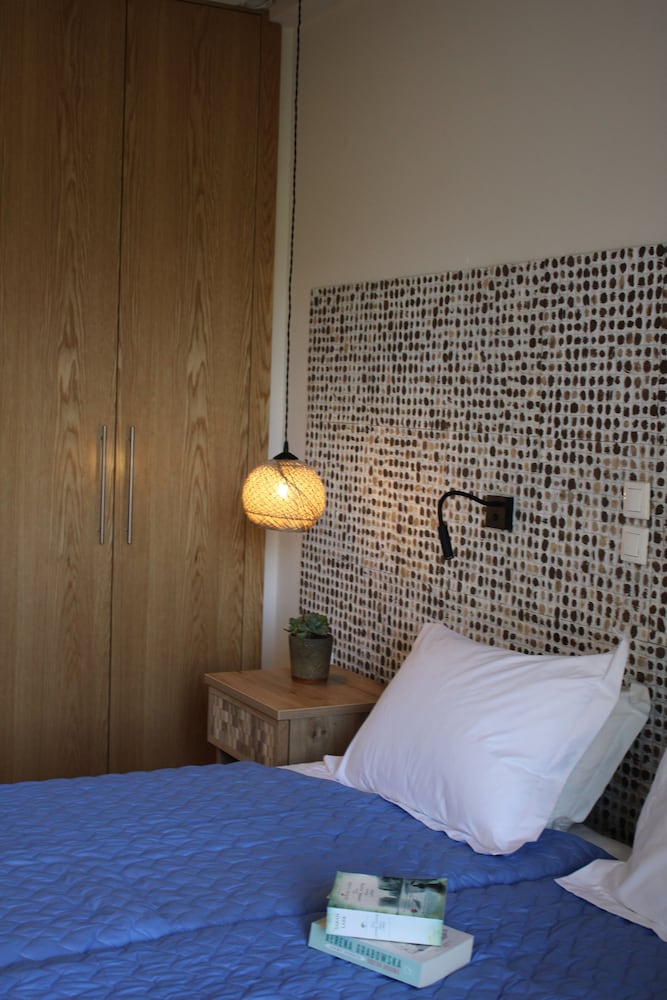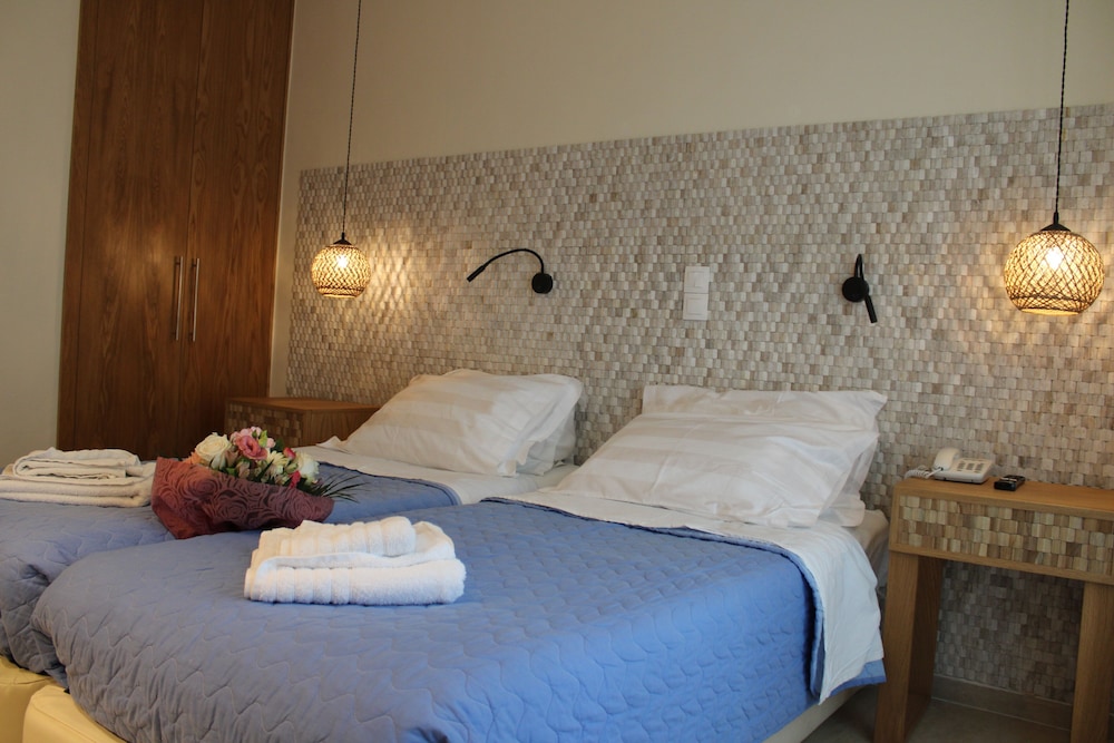 The staff make us feel very welcome. The hotel has a home feeling. Beautiful view from the terrace, close to shops and restaurants. They are working hard to keep the place spotless. Breakfast was really nice, fresh fruit salad, grec pastries and bacon egg and sausage on order.