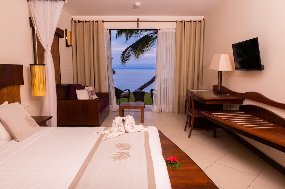 Escape to paradise at Mantis Soanambo Hotel and Spa, your perfect beachfront retreat in Nosy Boraha.