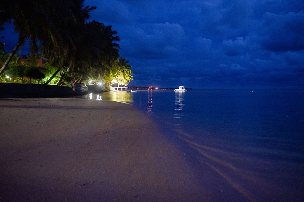 Rained hard a couple days, most of the time great weather. Food was excellent (breakfast and dinner included in room cost). They were very willing to cater to your food preferences. The pool area was beautiful and relaxing and was the perfect place to lounge and read a book or watch the sun set over the ocean. We enjoyed kayaking and snorkeling right from the hotel (gear available to use for free). The staff were all friendly and helpful. Very attentive to your needs, especially at meals. However, they don't often approach you by the poolside to offer snacks or beverages, so if you want something you just need to walk up to the bar. Their English was "okay", although some language barriers. The manager speaks English pretty well. She was friendly. The room was comfortable, although the power went out a couple times each night requiring us to wake up and turn the air conditioner back on. Also, the bed was surrounded by a wooden ledge about a foot wide, which was not the most comfortable for getting in and out of bed (although it makes the bed look kind of attractive and artistic). Hotels.com stated that there is free bottled water in the room, however this was not the case. The mini-bar in the room has only a few options-water and a few sodas. They picked us up from the town where our boat ride dropped us off and also gave us an early-morning ride back to the port town when we left, free of charge.