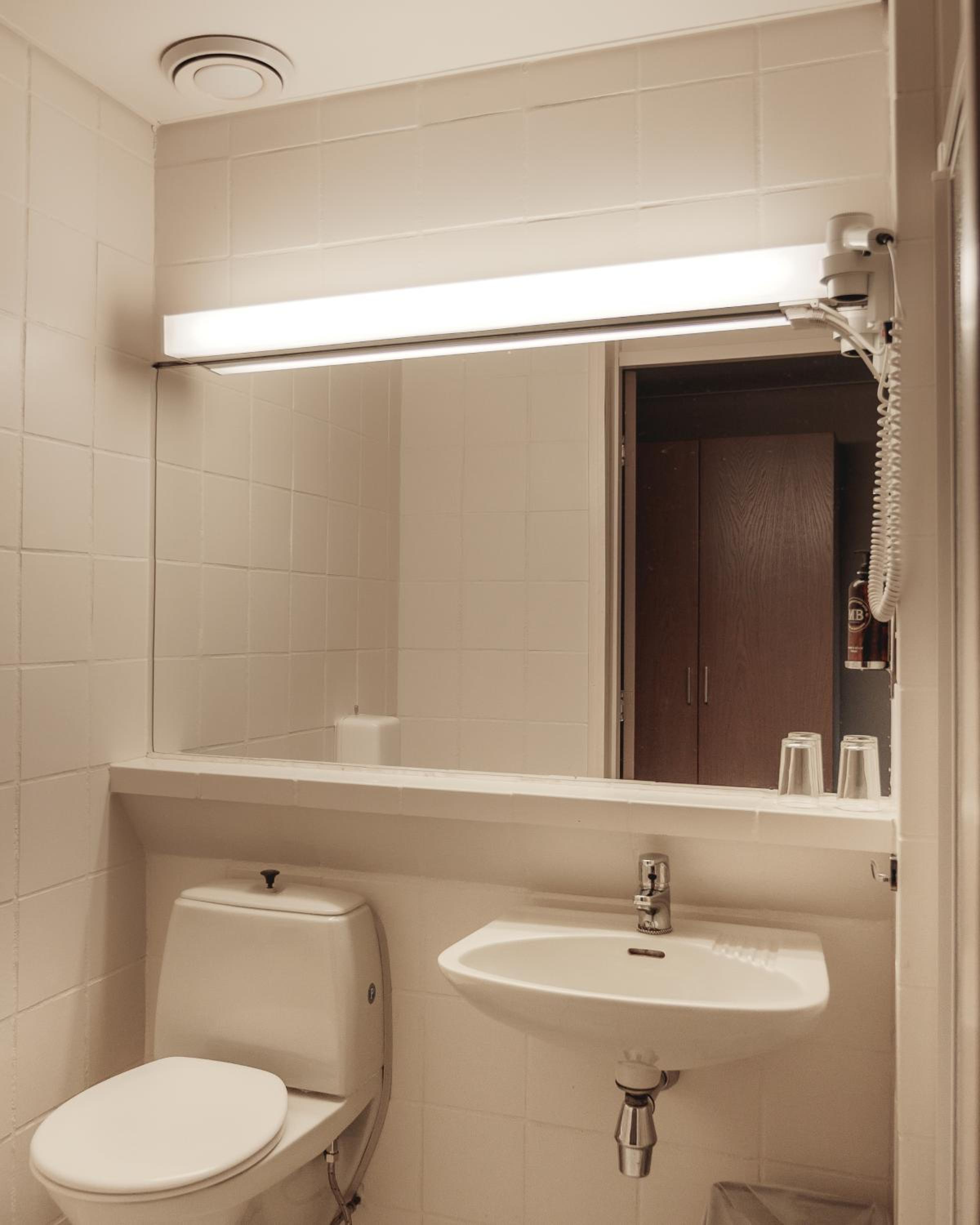 Savnet ansiktsservietter og bodylotion på badet.