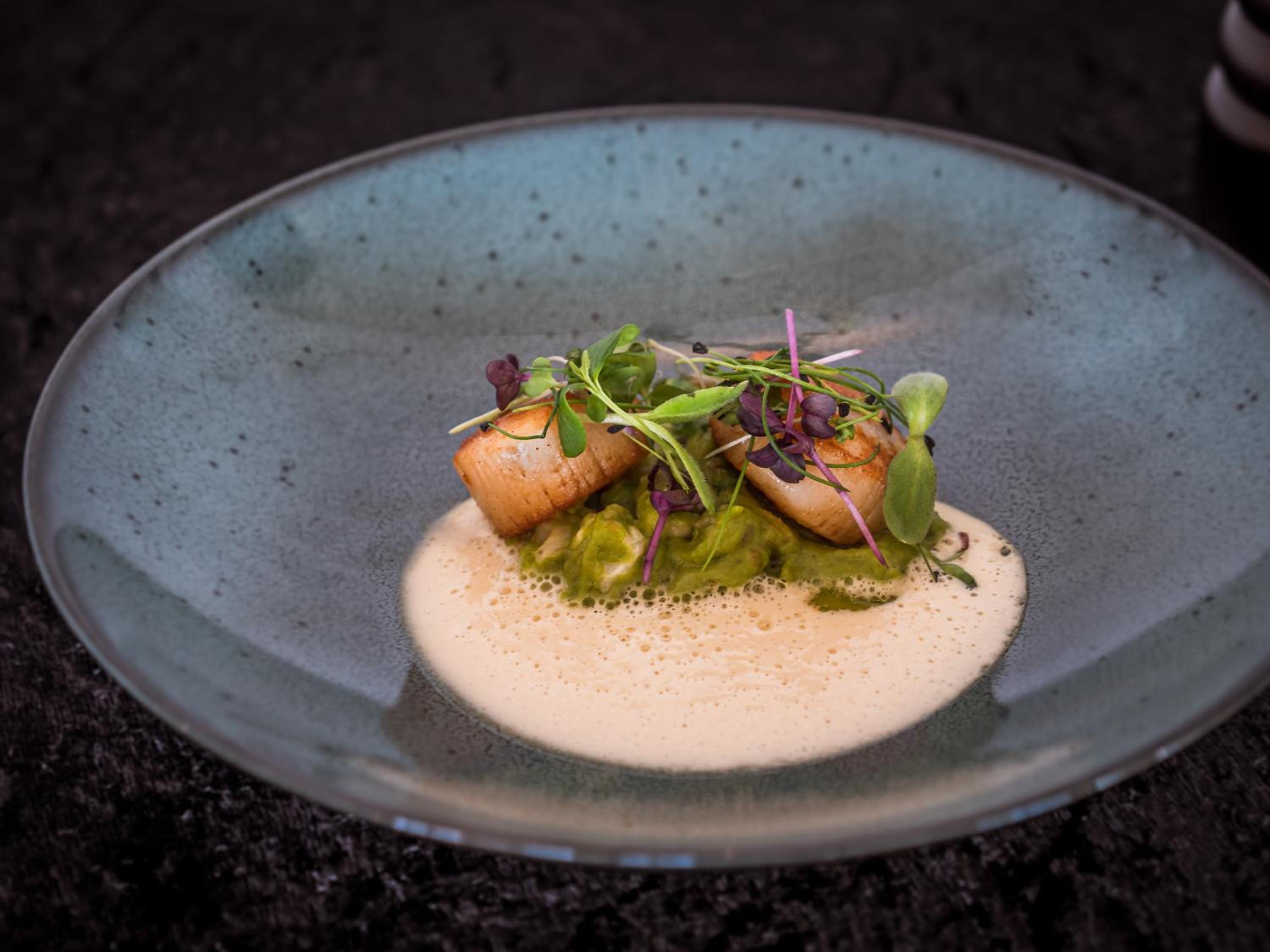 Guests can indulge in a culinary journey at the hotel's in-house restaurant, enjoying a varied seasonal menu with regional ingredients while taking in breathtaking sea views from the terrace. Additionally, there is a cozy bar for evening drinks and a garden to unwind in.