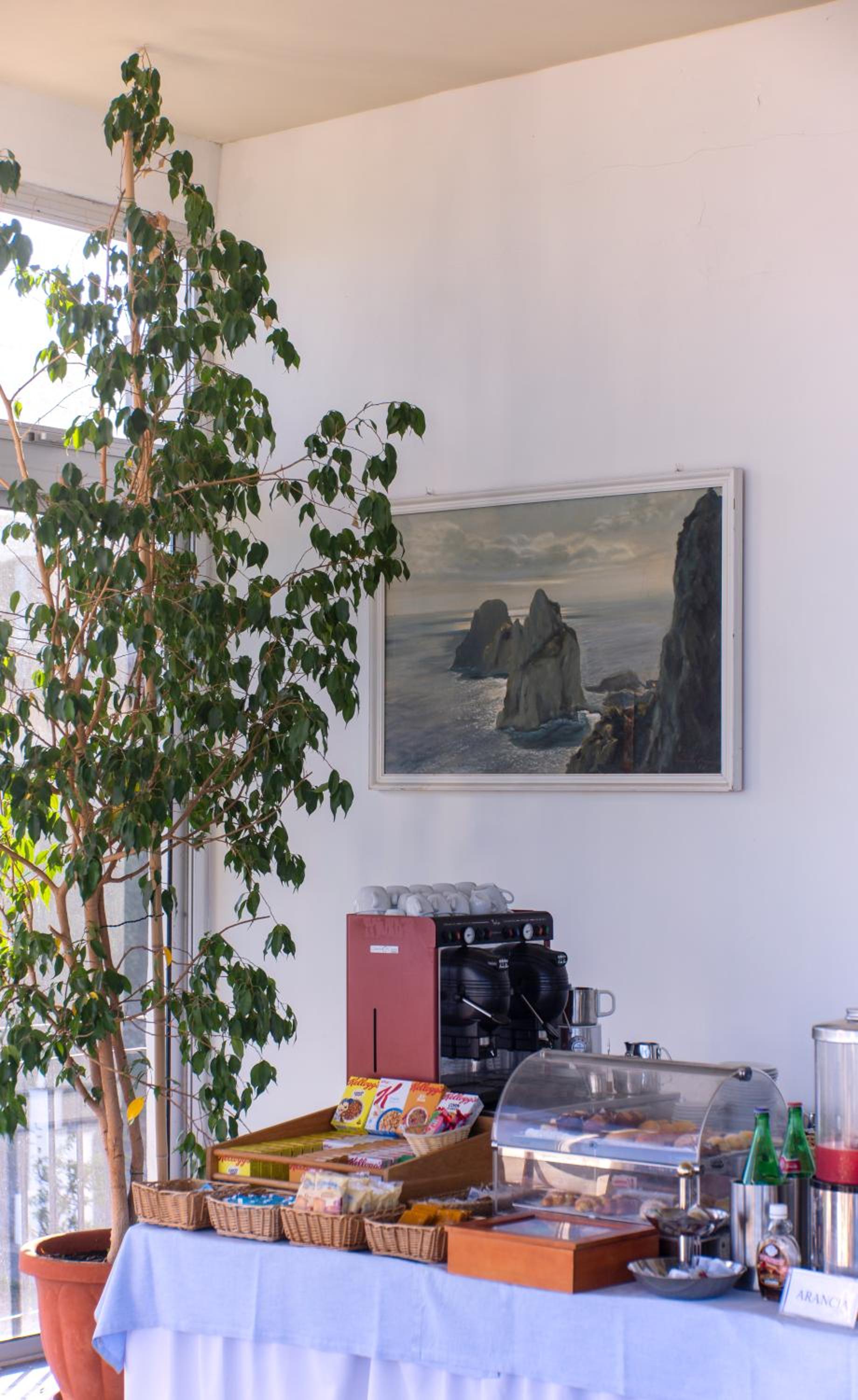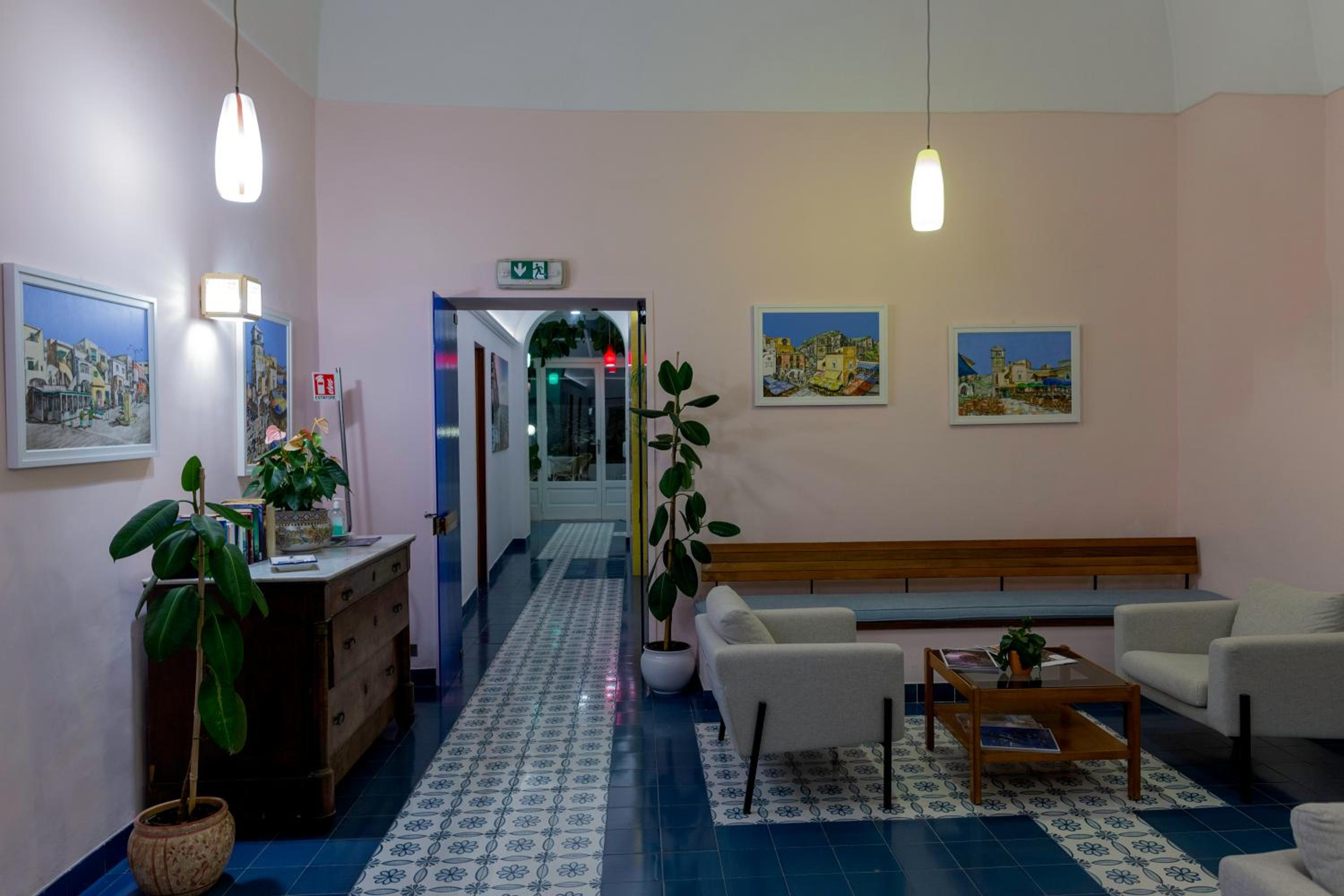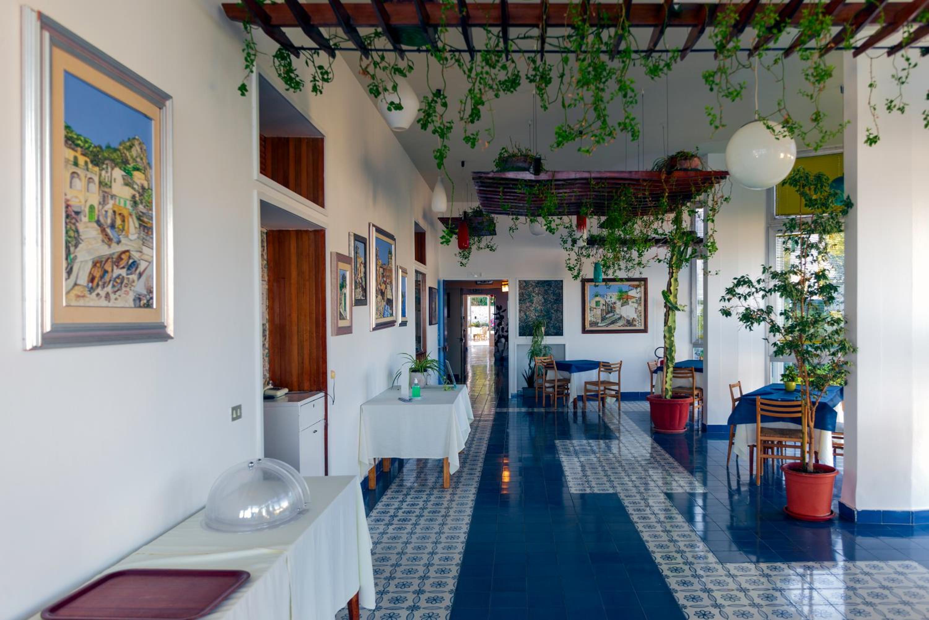 Fina sällskapsrum, pågående konstutställning, fina möjligheter att sitta utomhus. Bar och minibar. Fantastisk frukostmatsal med utsikt över havet, möjlighet att sitta både inne och ute på balkongen. Fint att se solen stråla på ön Ischia och se hela Neapel-bukten och Vesuvius! Bra frukost, väldigt gott kaffe. Väldigt trevlig personal.