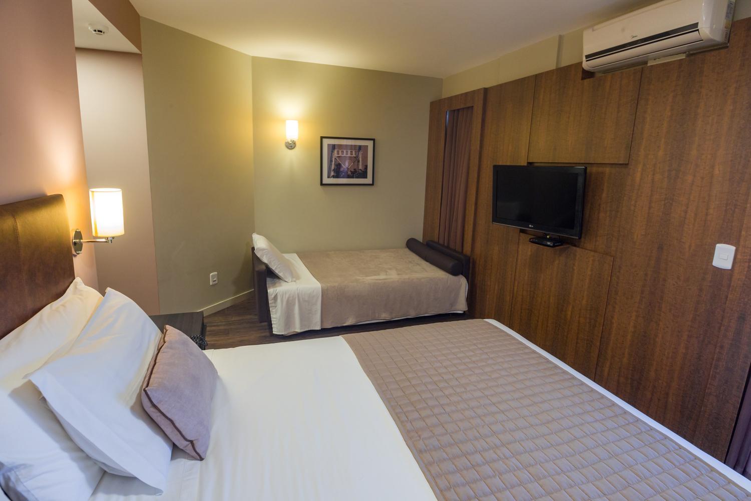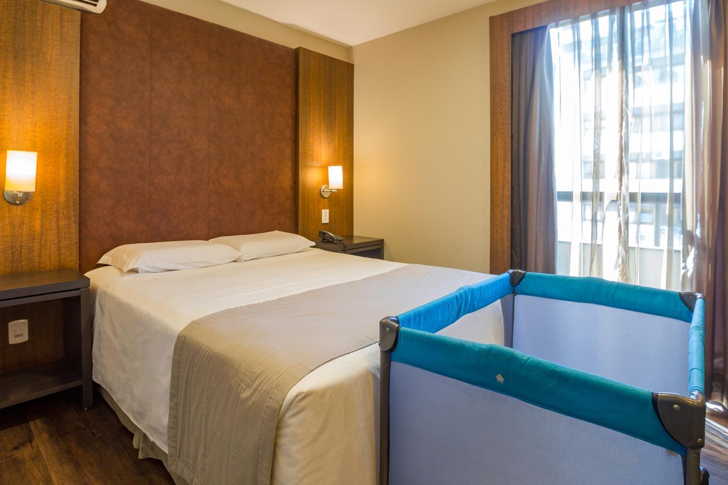 Nos hospedamos com uma criança de cinco anos e nos acomodaram em um quarto com somente uma cama.