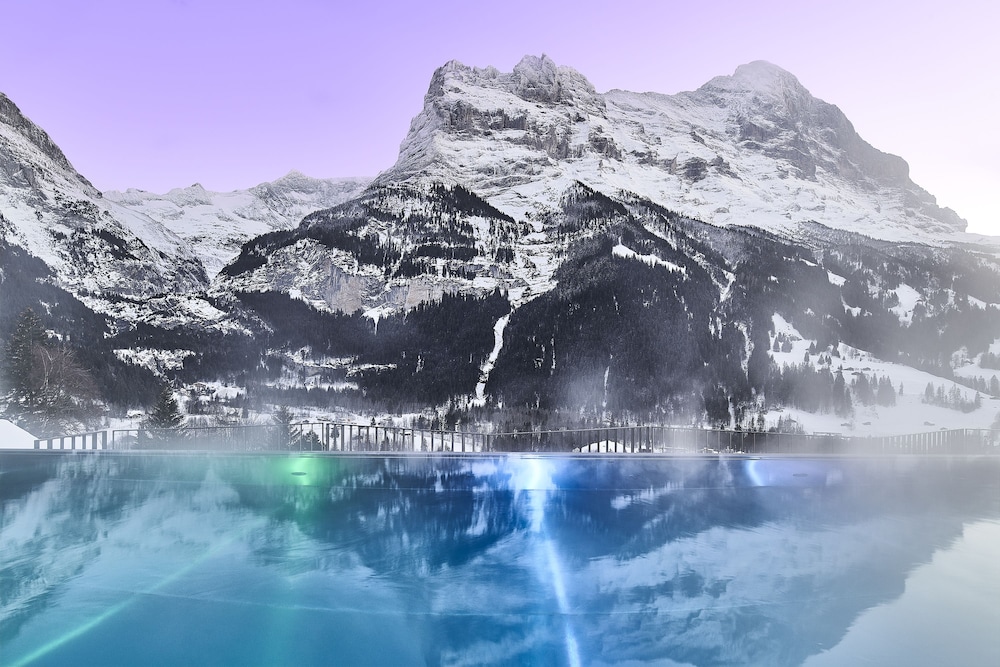 Nice swimming pool, beautiful scenery. Close to shop cable car (Grindelwald first) and restaurant