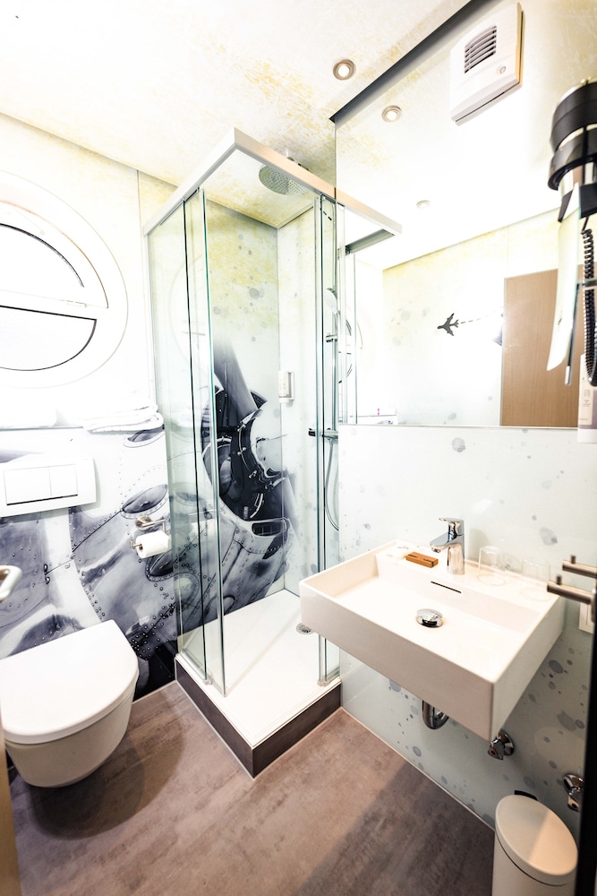 Positiv/ moderne Ausstattung, Themenhotel Flughafen,sehr freundliches und junges Team, Frühstück und Abendessen im Restaurant frisch und lecker.