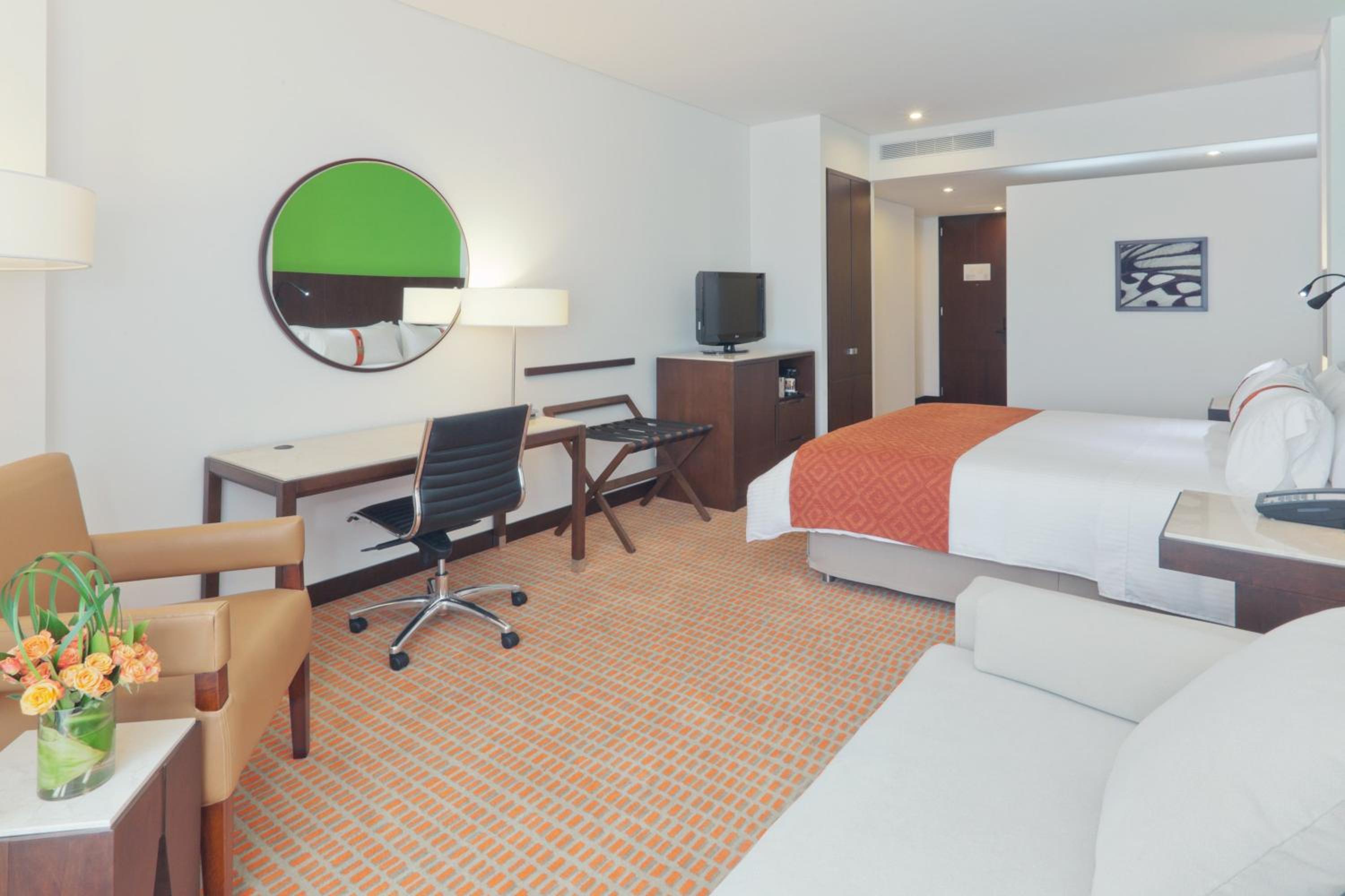 Experience comfort and convenience at Holiday Inn Bogota Airport with fully carpeted rooms featuring satellite TV, minibars, and free Wi-Fi. Some rooms even offer separate seating areas for added relaxation.