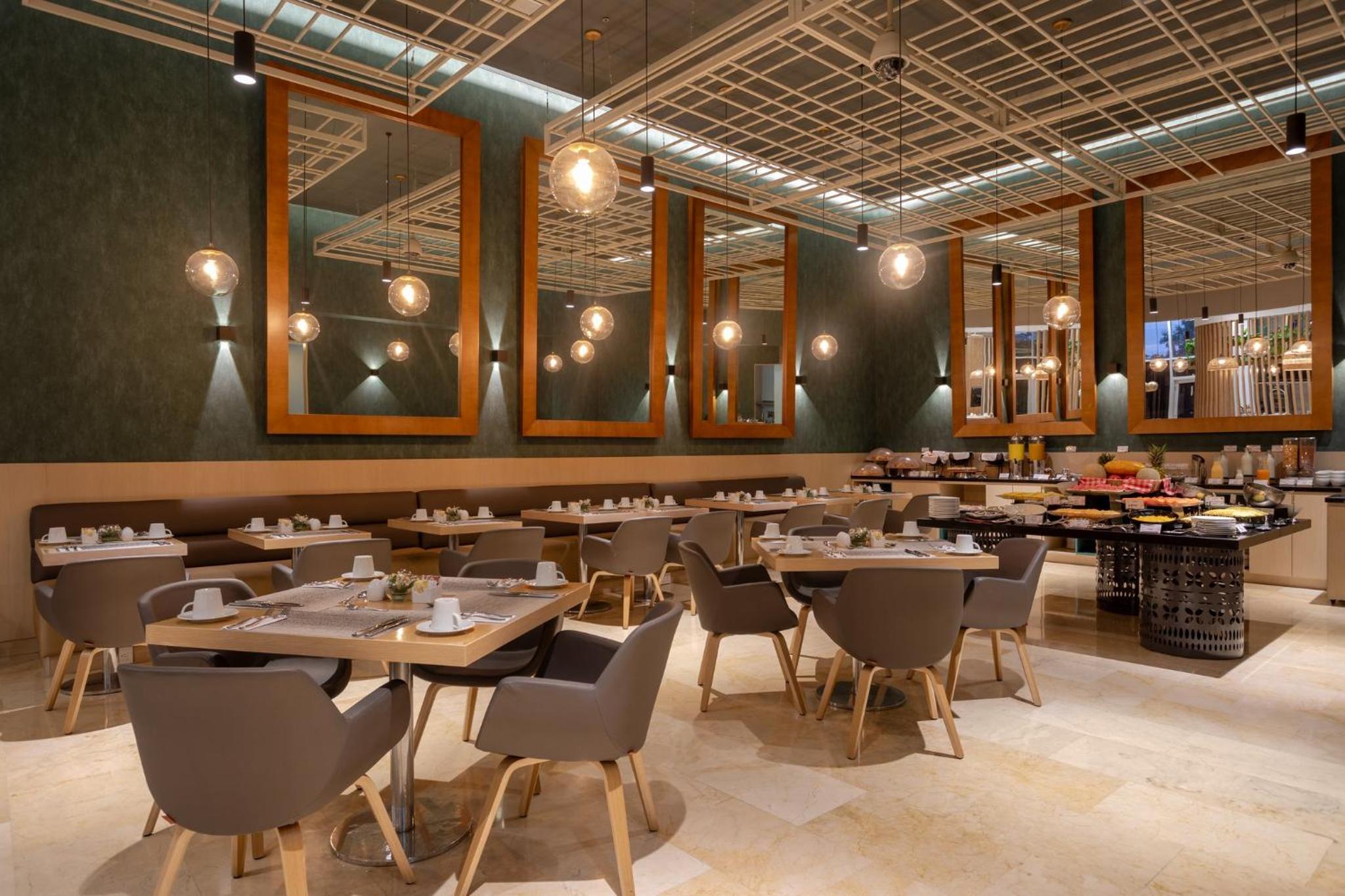 Indulge in a delicious daily breakfast and savor international cuisine at our on-site restaurant. For a taste of Bogota's vibrant culinary scene, explore the lively Zona T just a short distance away.