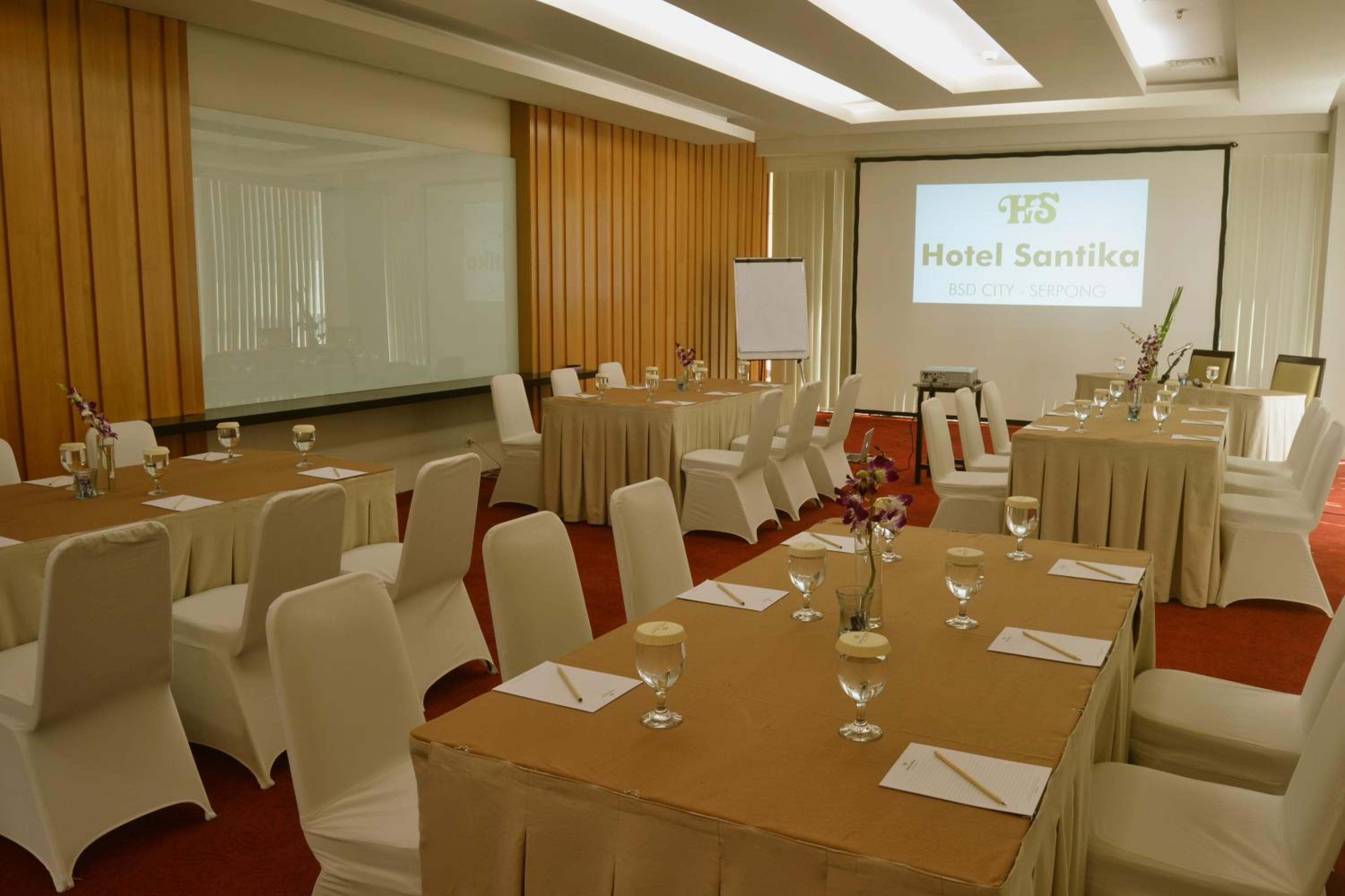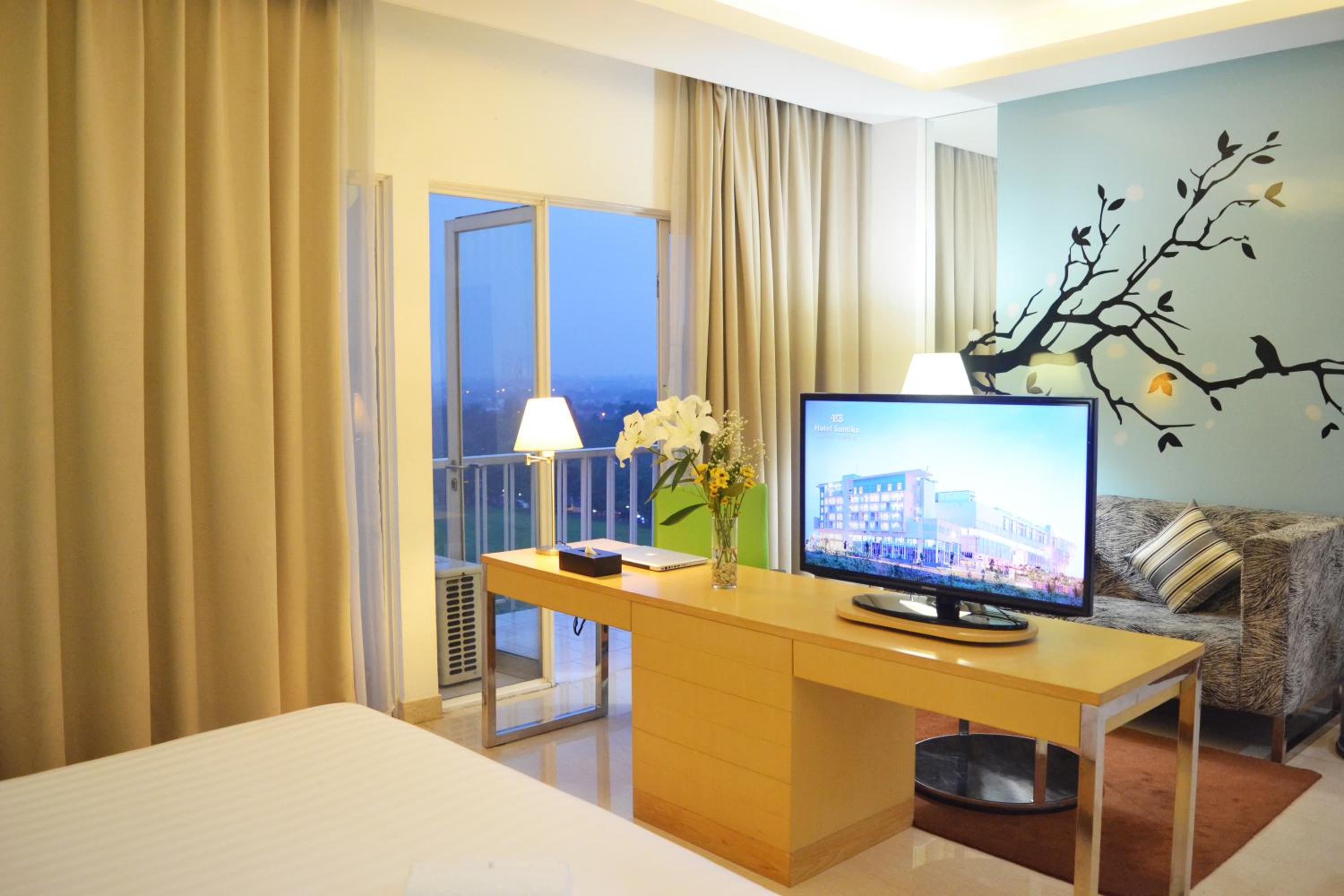 Santika BSD City-Serpong offers modern rooms with flat-screen TVs and free Wi-Fi, providing a comfortable stay for guests. The air-conditioned rooms with full-length windows, a tea/coffee maker, and work space ensure a relaxing environment. Guests can enjoy services like a business centre, massage services, meeting facilities, and 24-hour room service.
