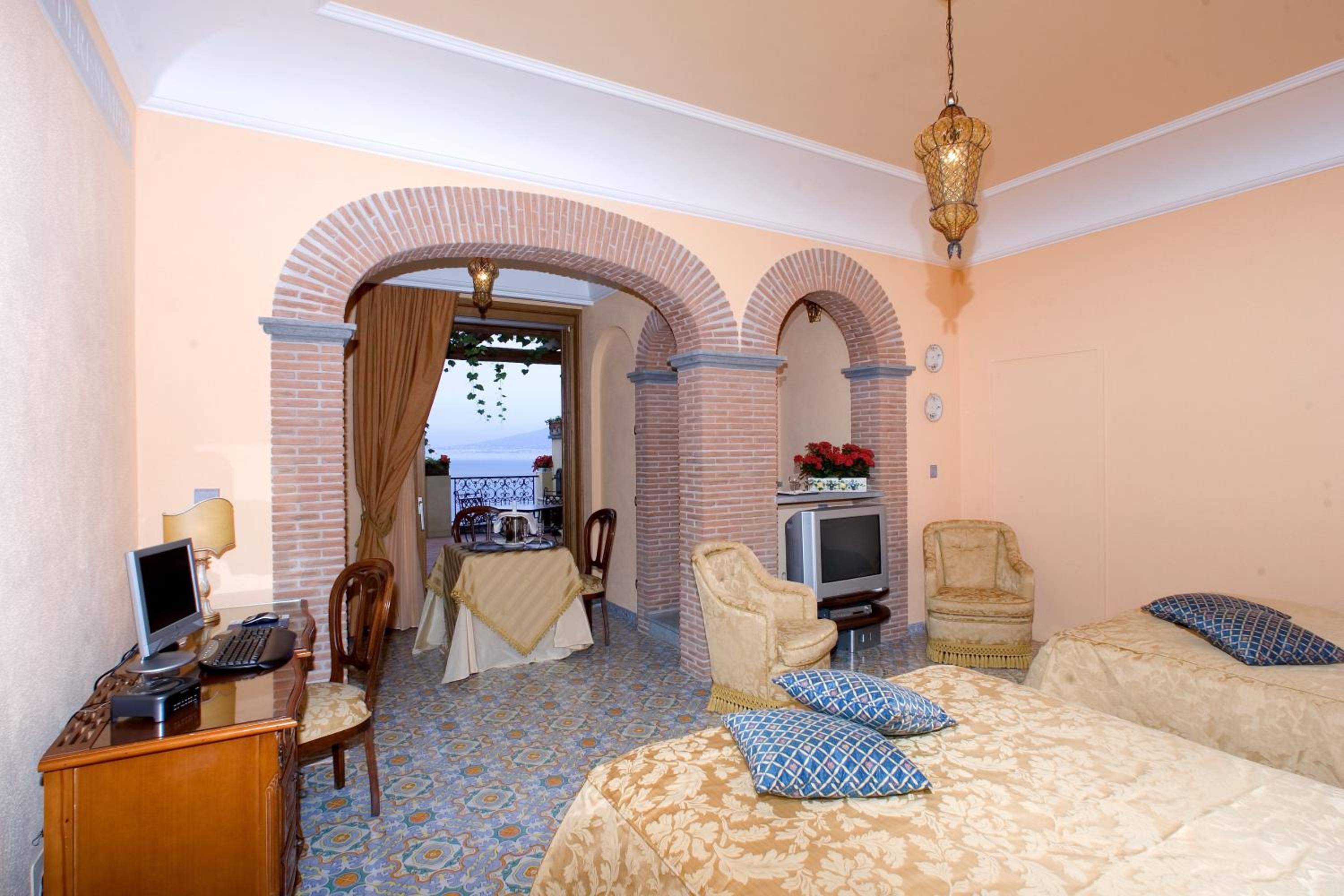 We stayed in a Junior Suite at LaTonnarella and had a panoramic view of the sea and Vesuvio that was breathtaking! When we arrived the first night we were greeted like family by Giuseppe Aiello, I believe he was the manager. He checked us in, answered all our questions and took us to our room. What a welcome! We are ordinary people and were greeted like celebrities. The hotel exudes an old world charm with lots of color, ceramic tilework, sunshine and a relaxed vibe. There were some areas tho that could use a little freshening up.