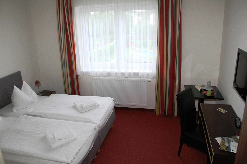 Right across from train station. Nice old hotel. Nice patio to sit and eat breakfast. Nice staff.