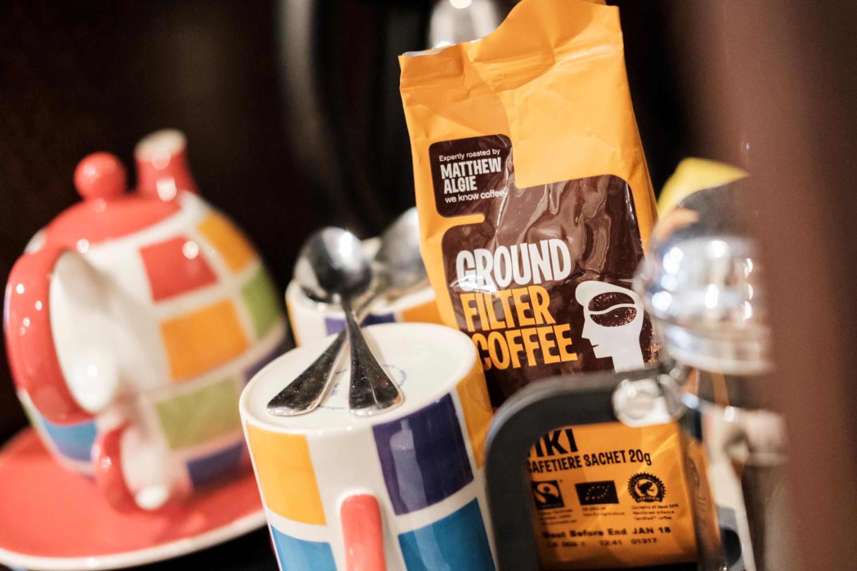 The bed was comfy. Nice decor. Great shower. Coffee machine. Pub