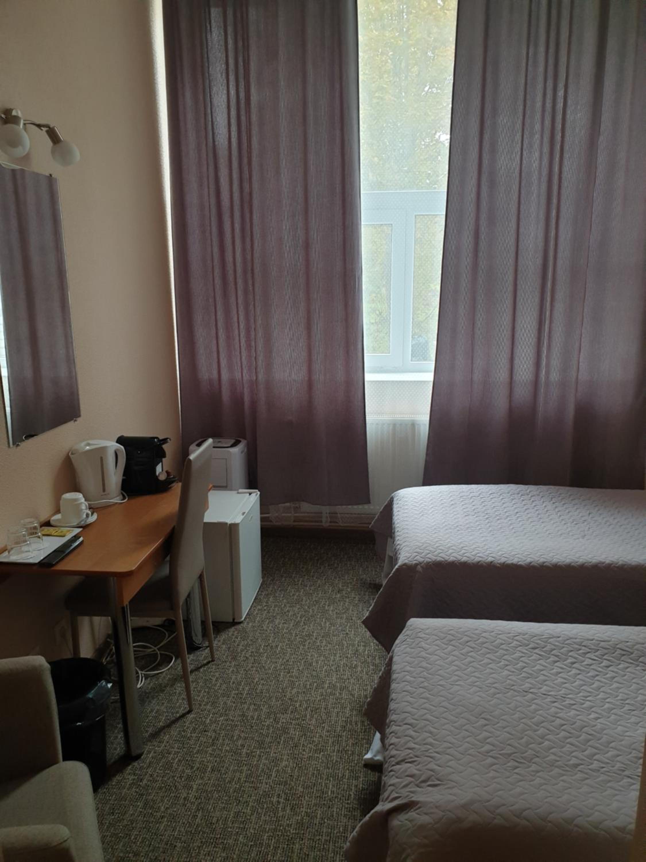 Кровати узкие. Кофемашина не работала. Окно не открыть. Интернет глушился на первом этаже. Багаж оставить нельзя. Завтрак был не очень вкусный. Ресепшен работает до 19.00
