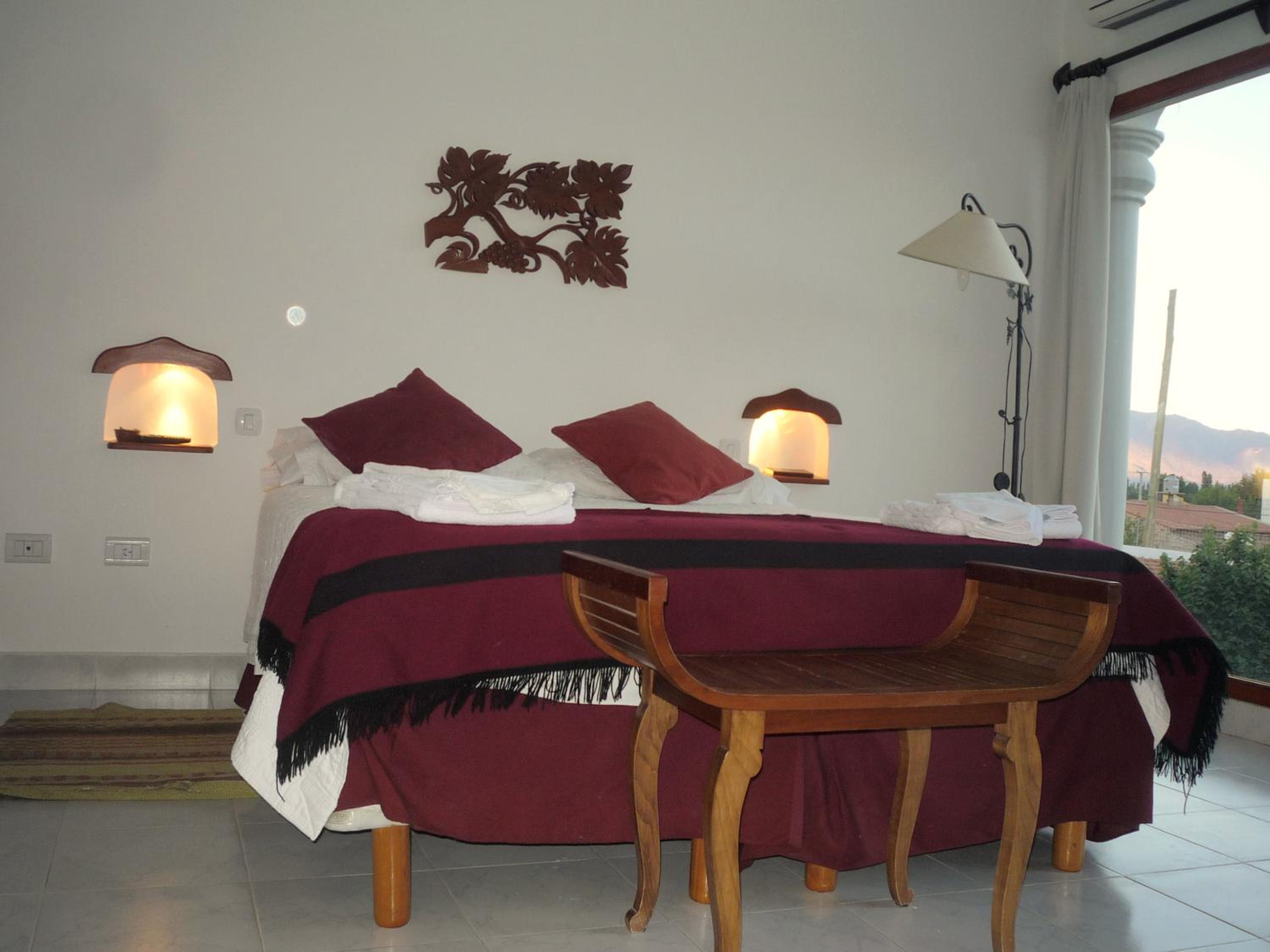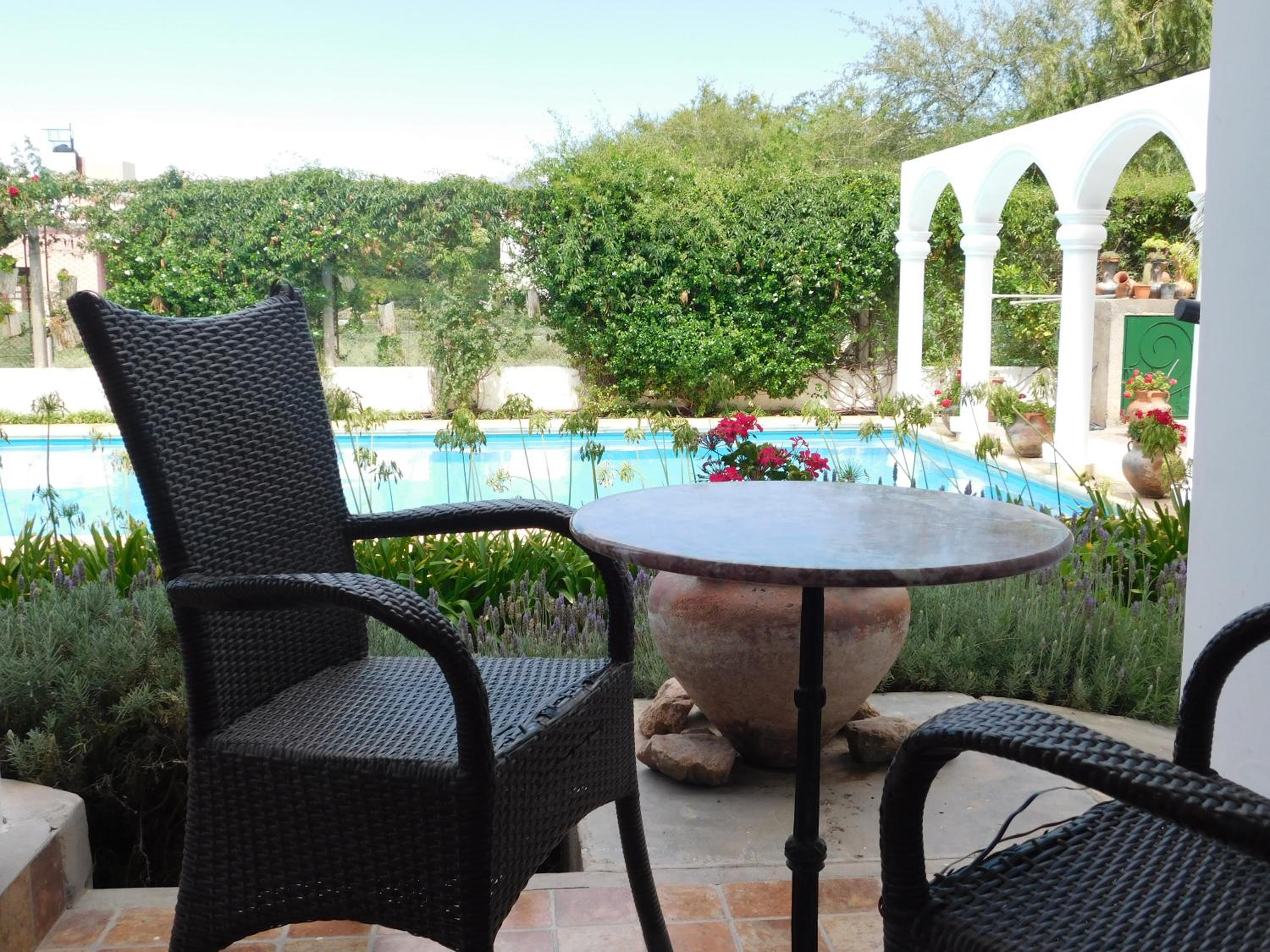 Unwind in the on-site organic garden, hot tub, or poolside sun terrace overlooking the stunning Cafayate hills. The impressive sculpted wooden door sets the tone for a tranquil stay. Don't miss the delicious breakfast served on the shaded terrace with homemade delicacies.