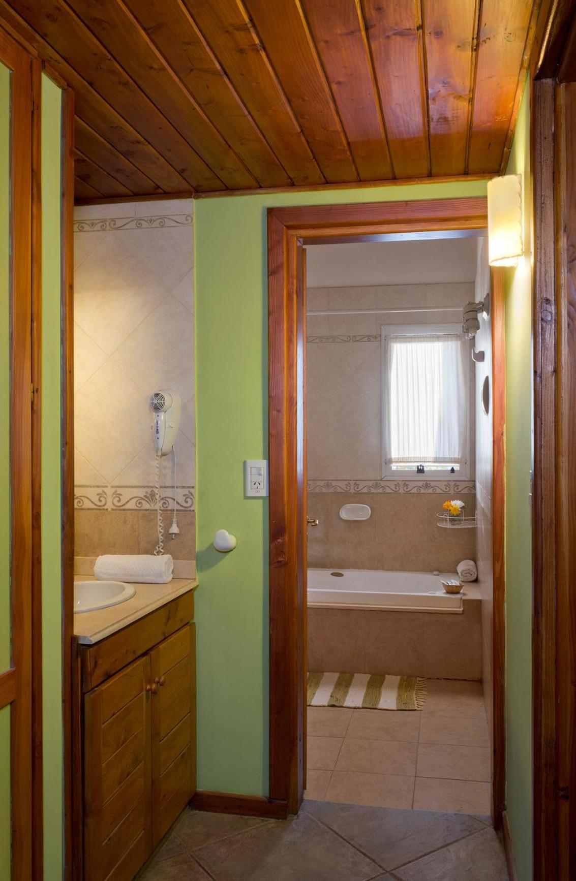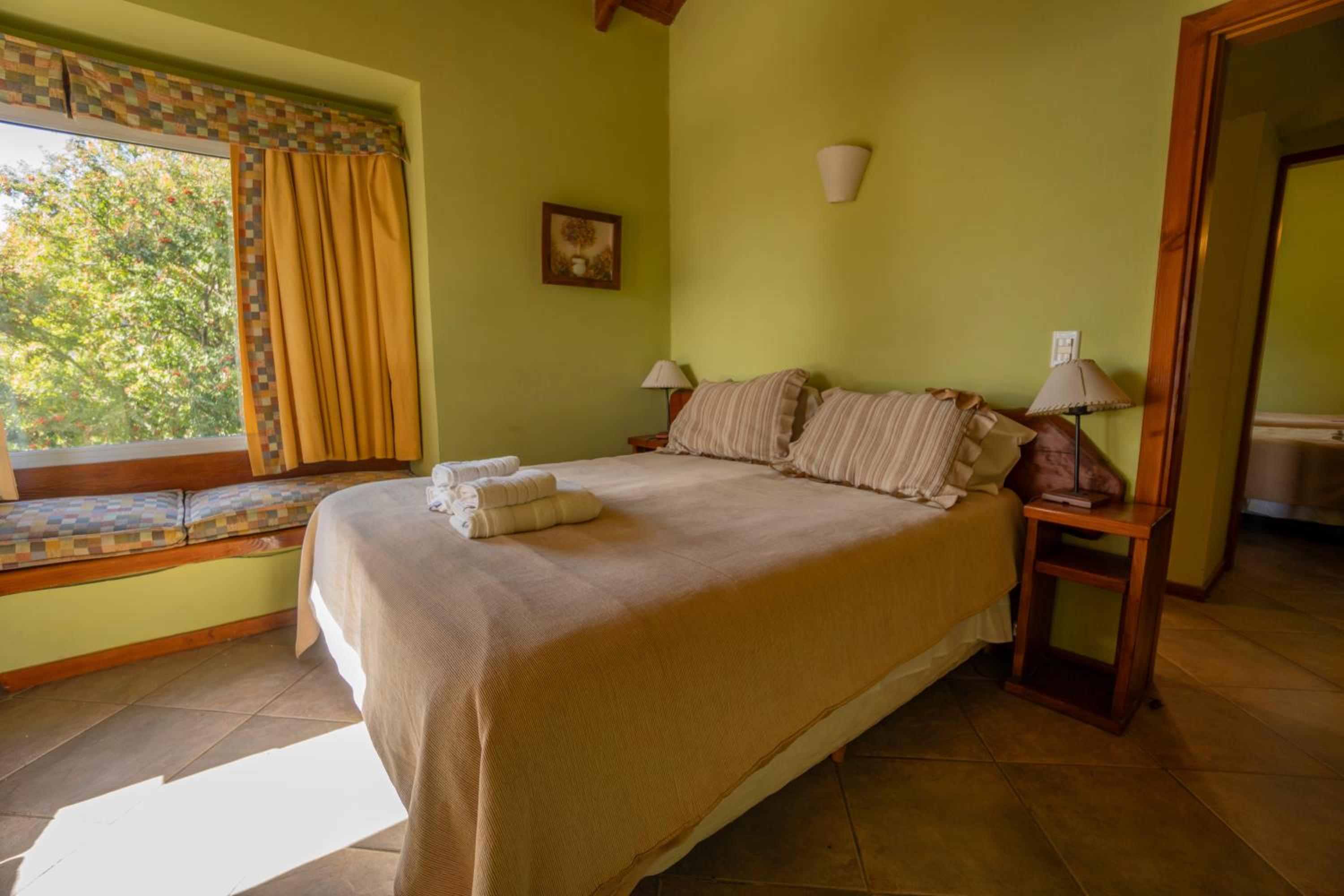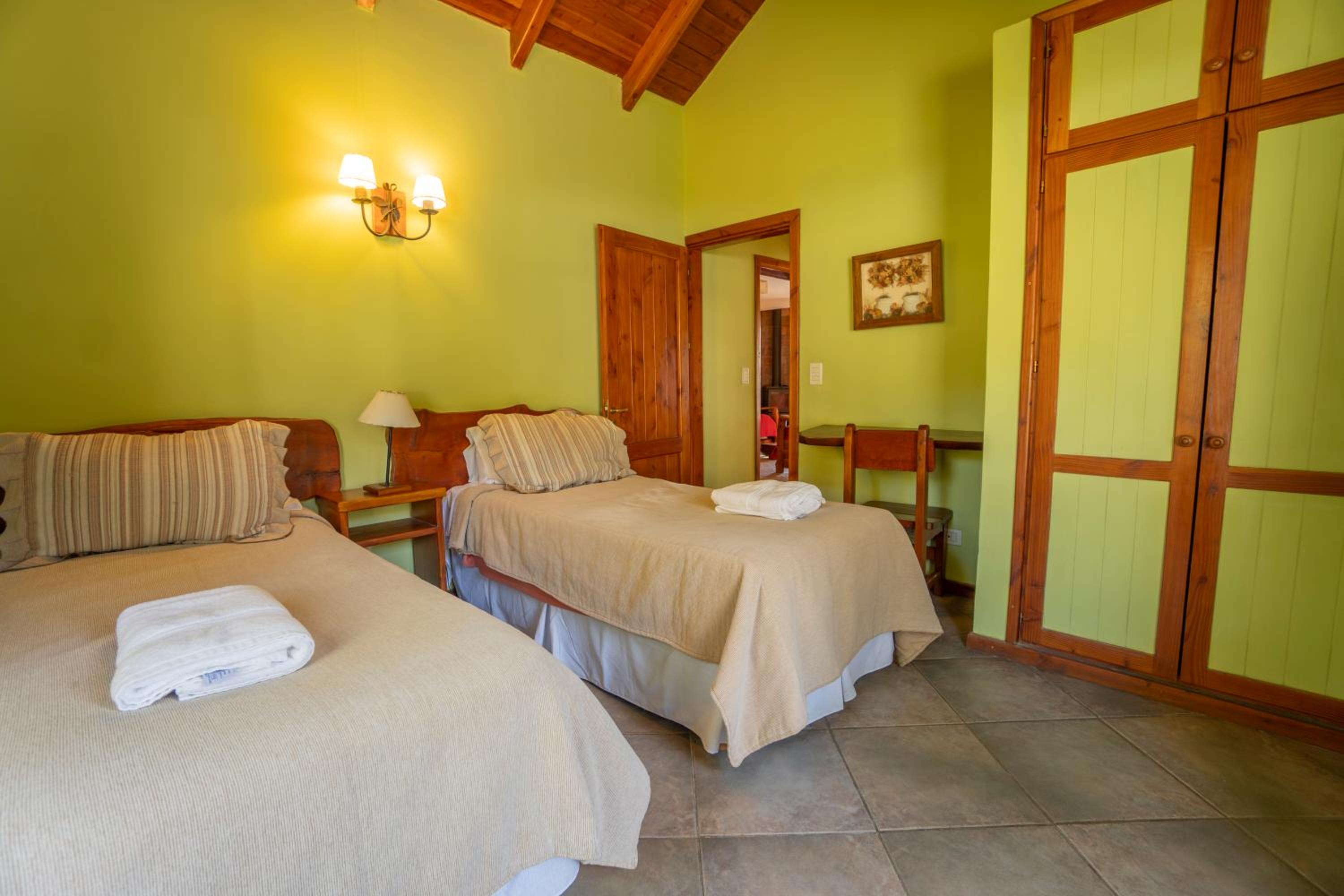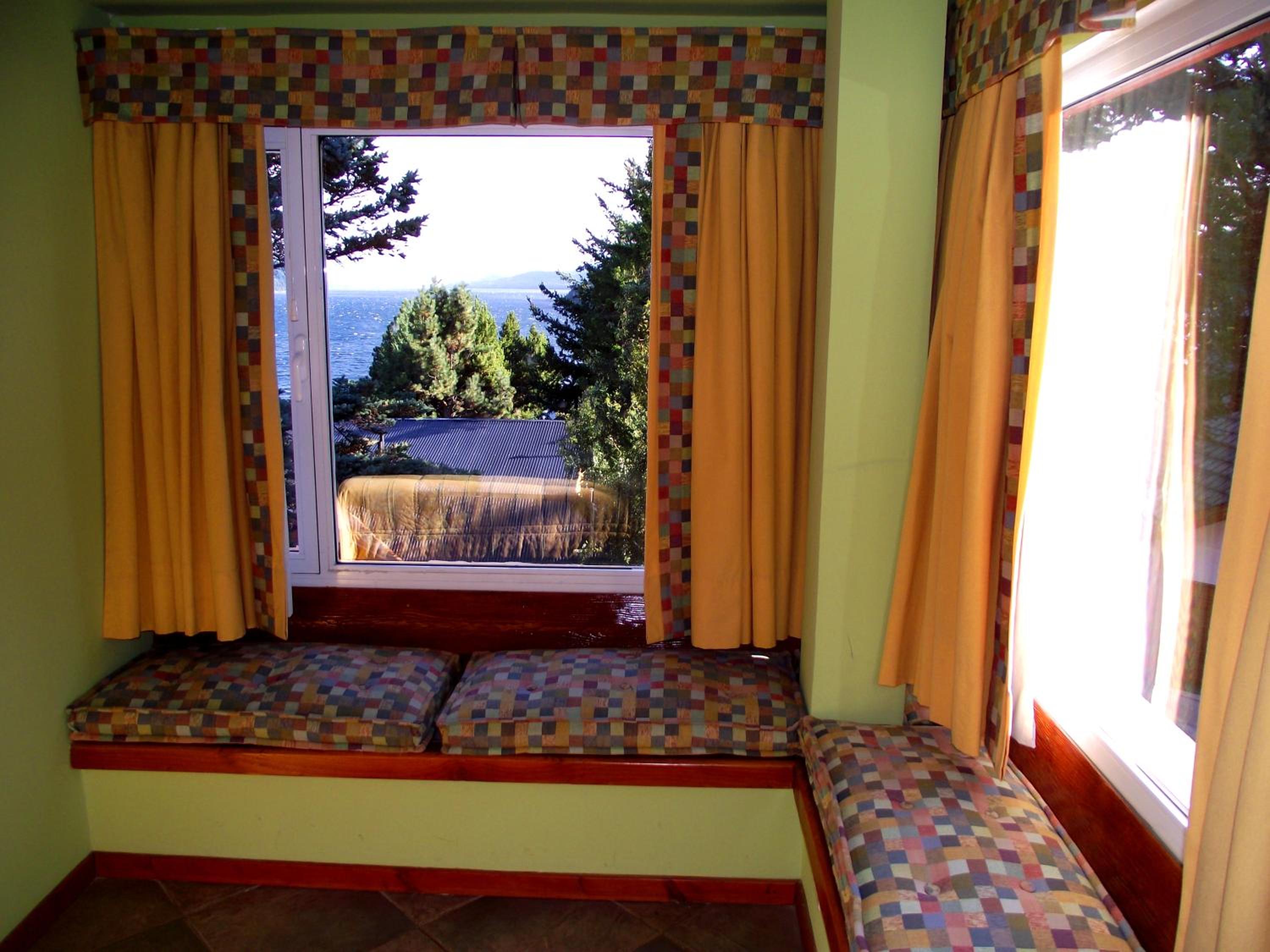 Charming Rustic Bungalows: Enjoy the cozy atmosphere of wooden rustic furniture and the convenience of self-catering facilities in our bungalows, each with a private balcony overlooking Nahual Huapi Lake.
