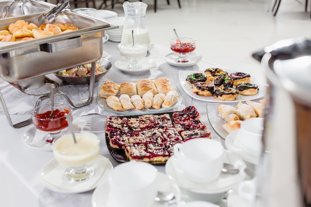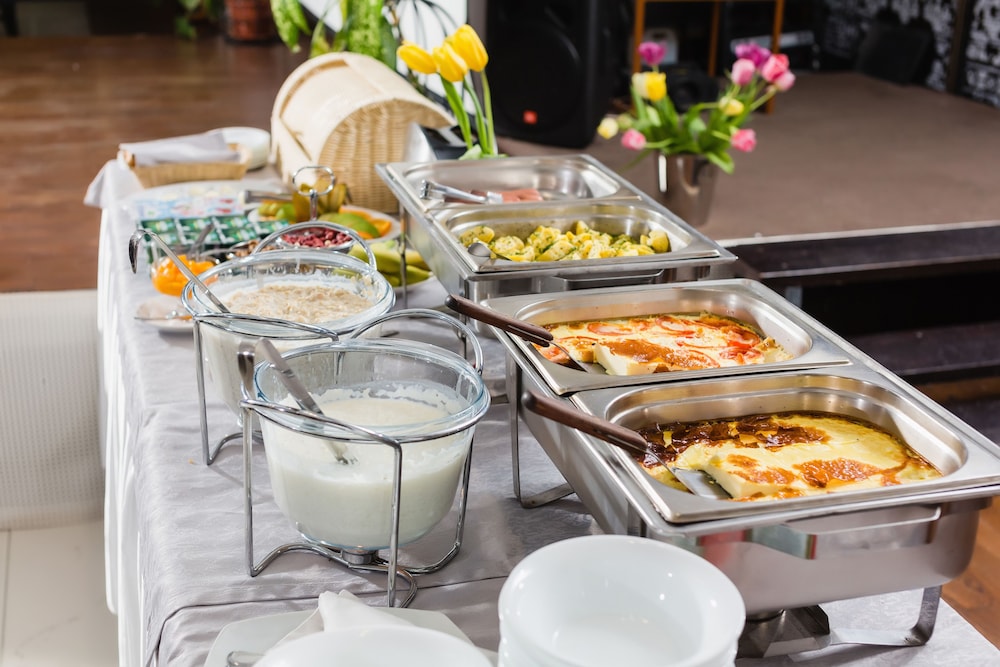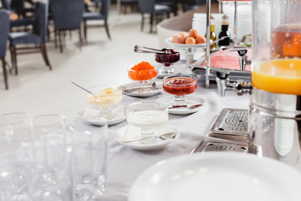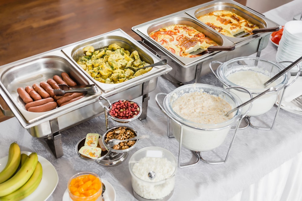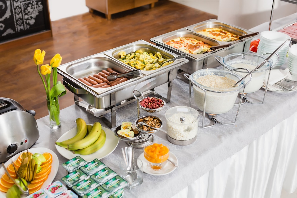 Breakfast buffet is pretty good with a nice assortment of pastries, eggs, porridge, and some Russian traditional items.