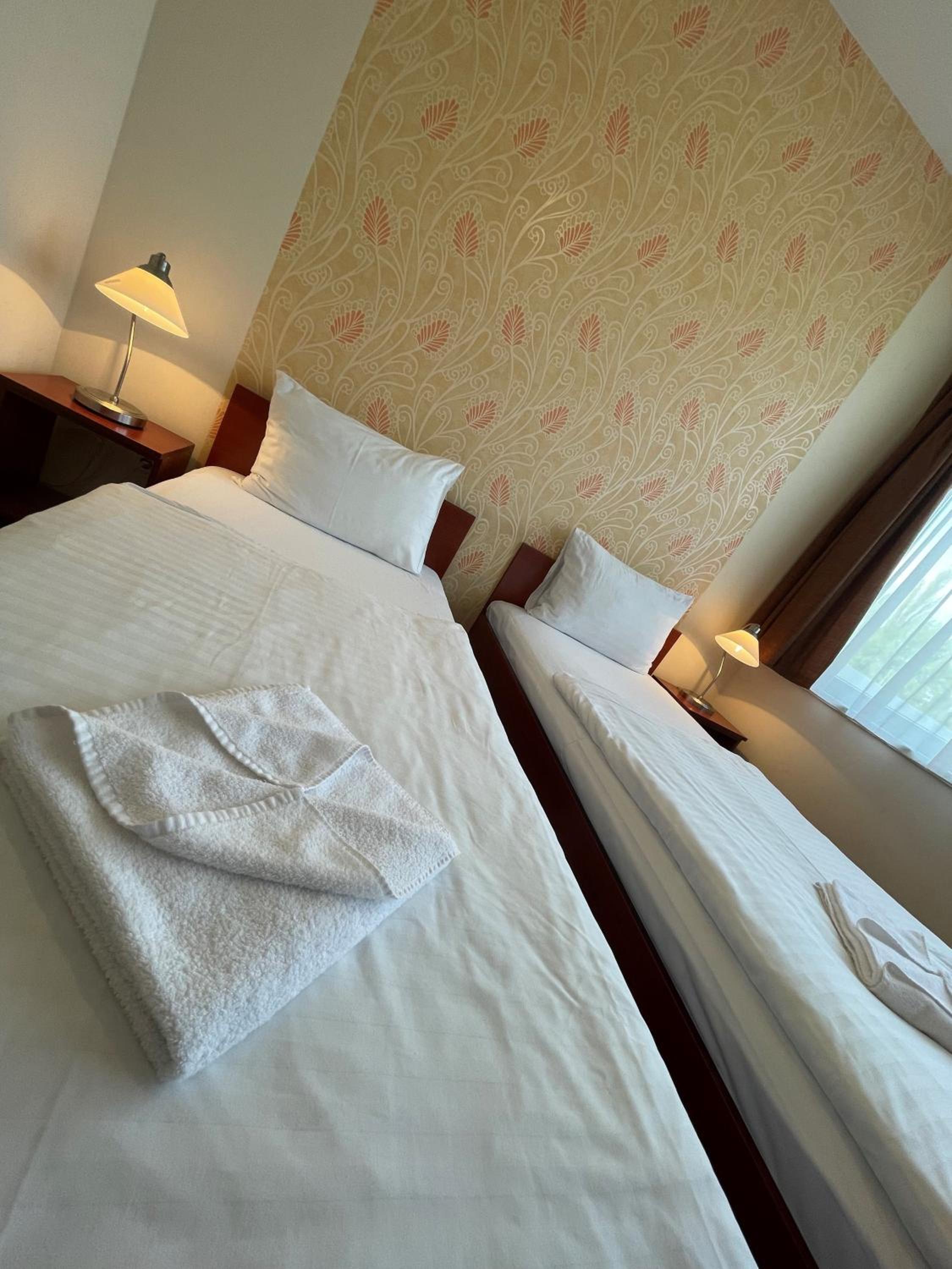 Nepovysavany koberec. Vstupne dvere do izby dobre po zatvoreni nedoliehali. Ked ste si lahli na postel poculi ste vsetko na chodbe. Extremny hluk od hlavnej cesty. Kupelna po dobe pouzitelnosti.