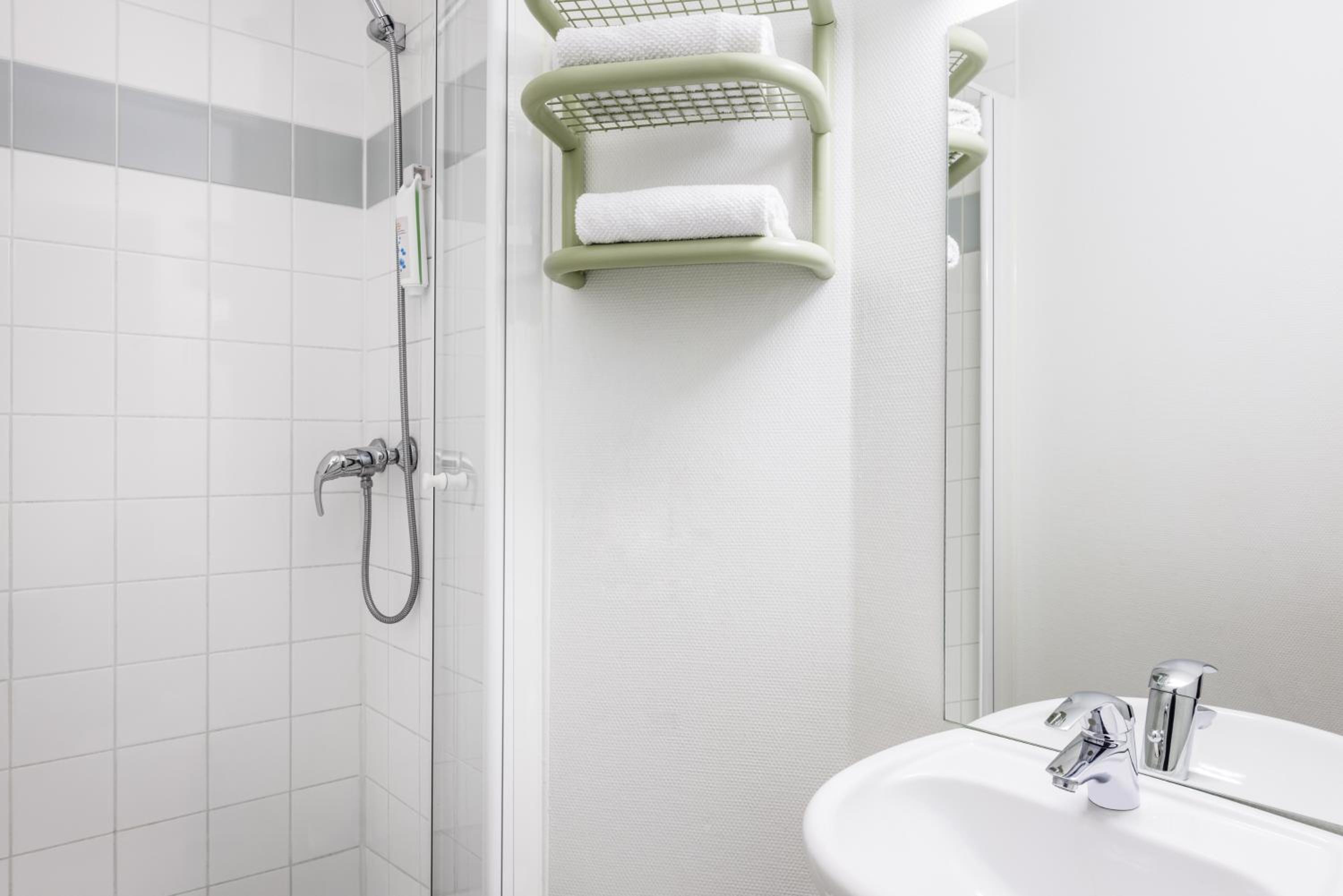 Kleine kamers douche en wastafel onhandig en geen opbergruimte voor spullen