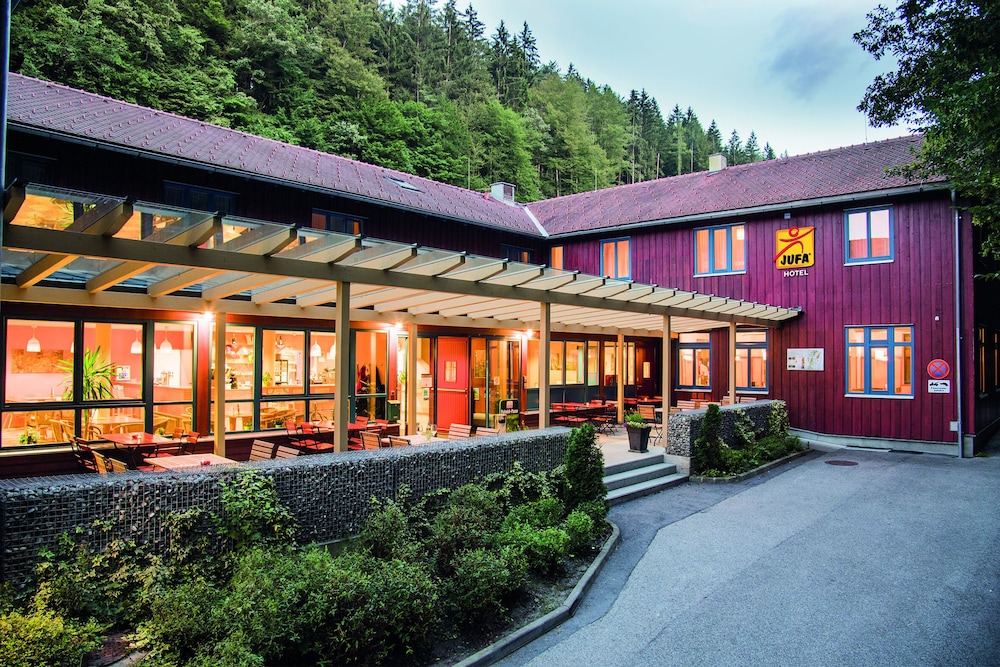 This is the 3rd time we have stayed here and each time have found it to be clean and comfortable with large, spacious rooms. Unfortunately, each time it has rained, so we couldn't really enjoy the nice hiking trails adjoining the property. But, each time we have enjoyed the fantastic sauna/wellness area and the tasty breakfasts. JUFA's are very family oriented hotels and there were two school groups there the night we stayed and the kids were fairly rowdy when we arrived, but were quiet from 9pm to 8am.....yay! So, we had a great night's sleep! No restaurants in the immediate area and evening food choices are limited, but we were told you could book a buffet dinner there in advance (whatever the school kids had for dinner smelled fantastic).